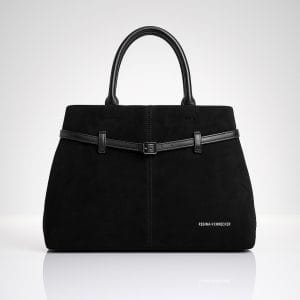 Дамска чанта черна, от изкуствен велур, средно голяма 5359H