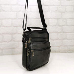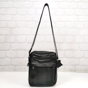 Мъжка чанта 66450H черна, средно голяма, естествена кожа