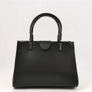 Чанта от естествена кожа с текстилна дръжка“Еврика“10H-1H черна, малка