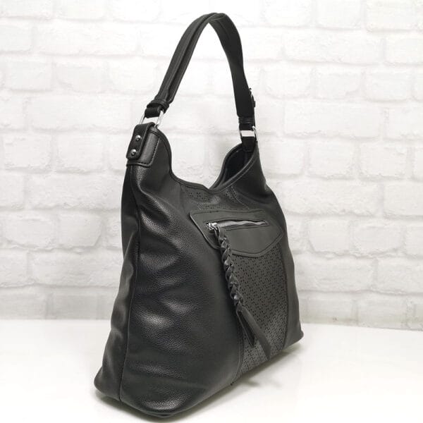 Една дръжка удобна за носене на рамо и една подвижна регулираща се дълга дръжка.