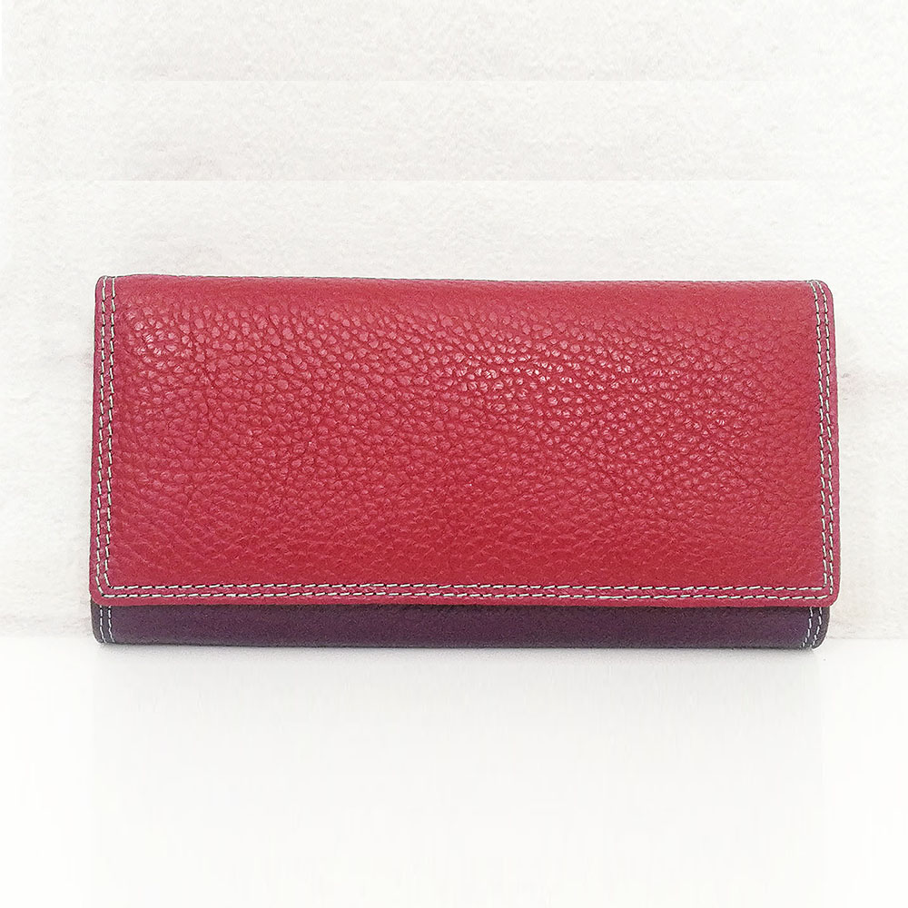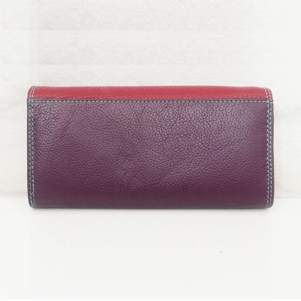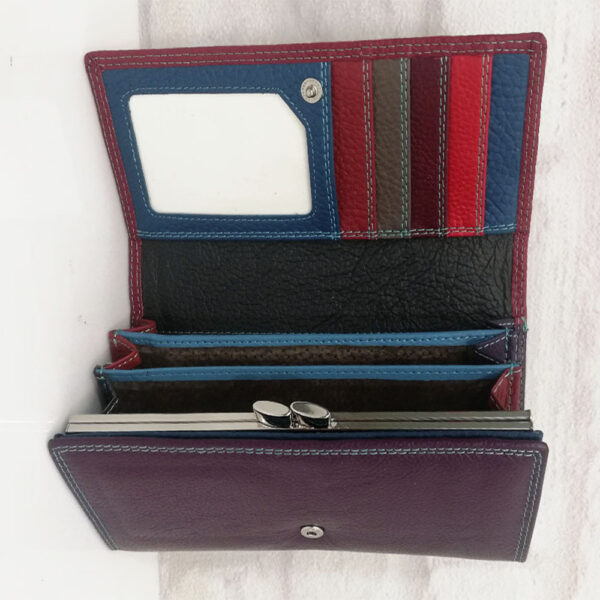 Дамско портмоне естествена кожа W34СНЛ лилаво с червено, многоцветно, голямо