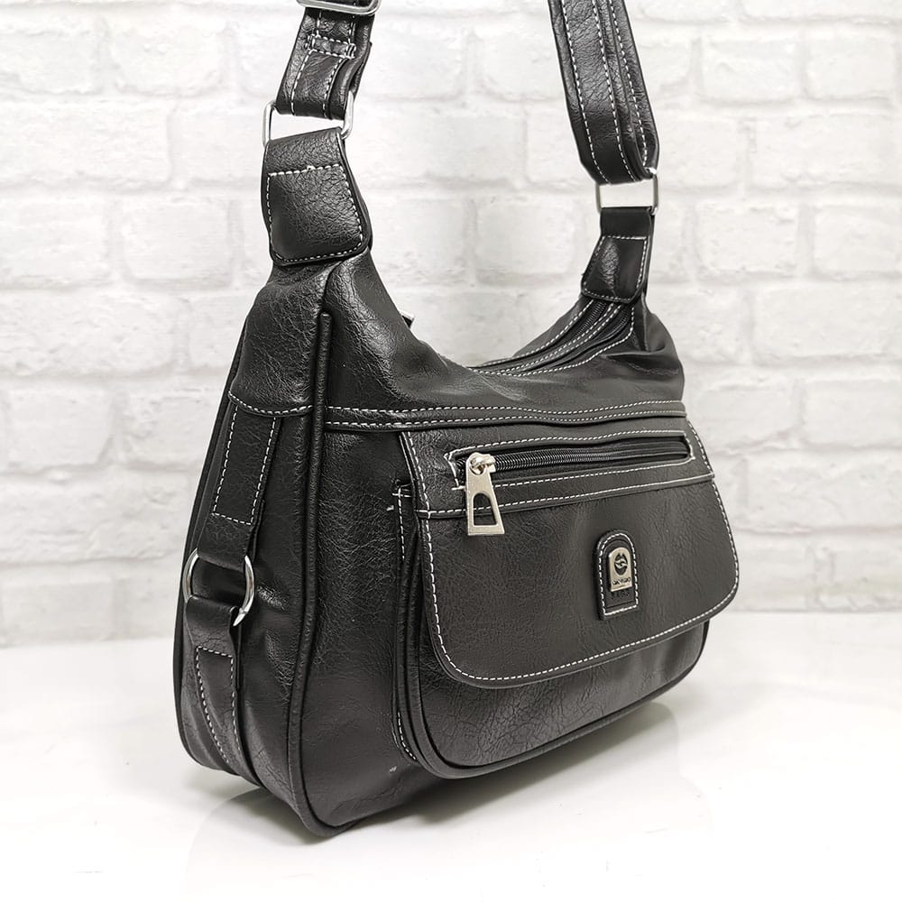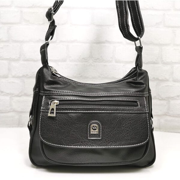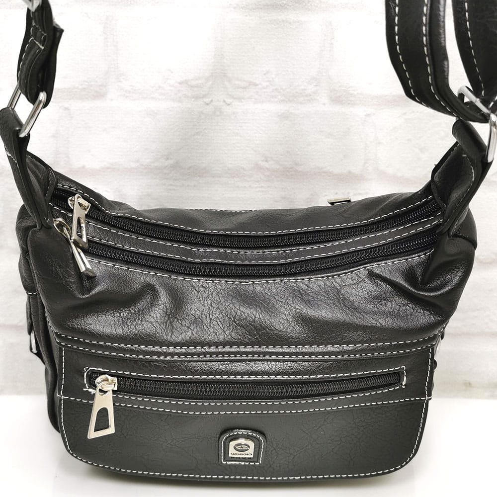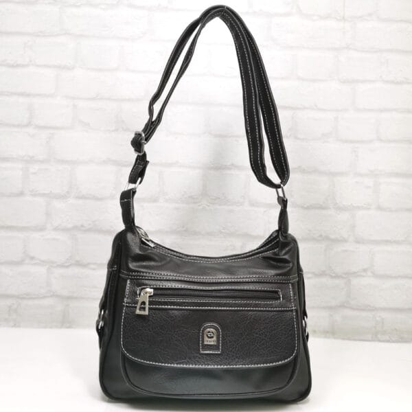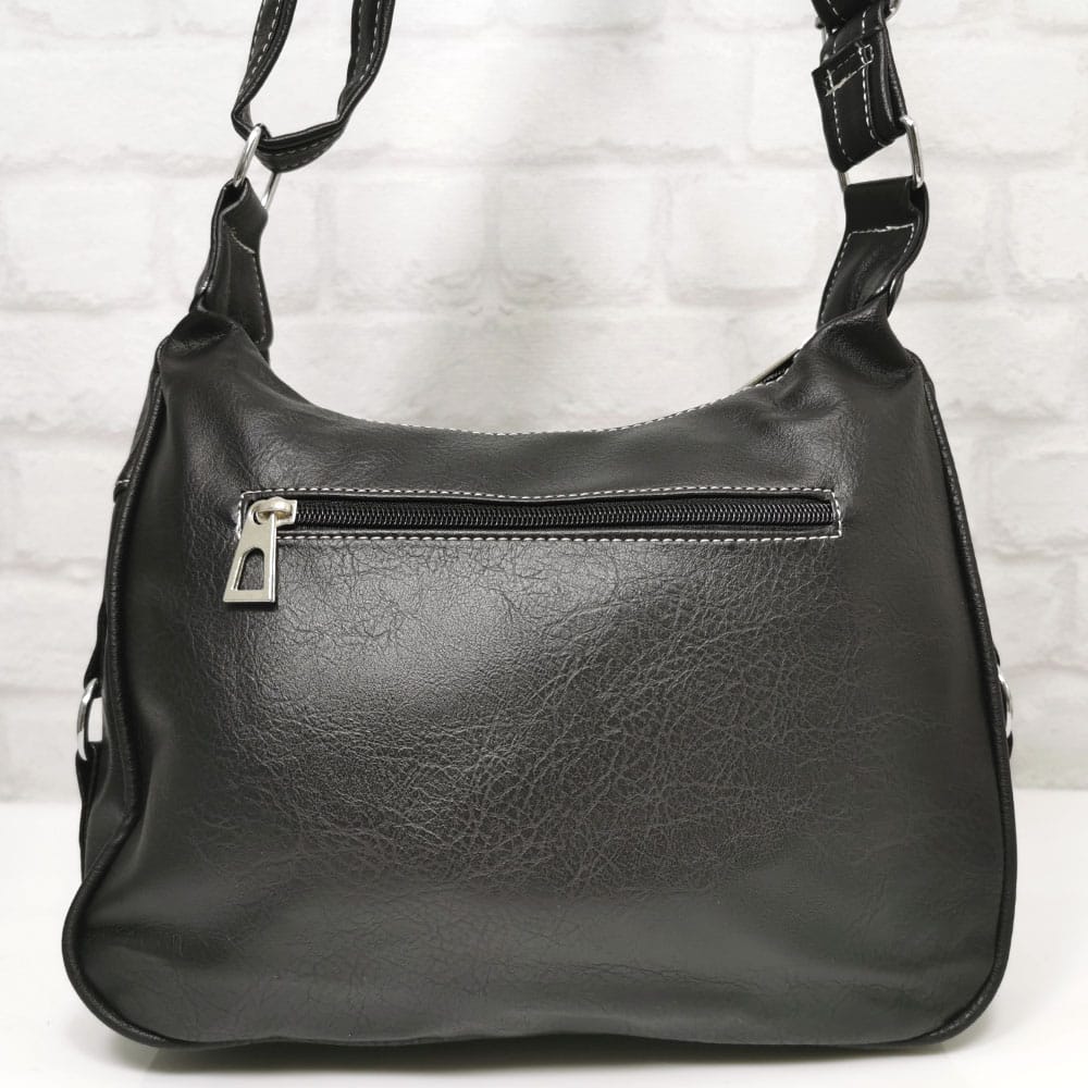 Отпред: джобче с цип и голям джоб с капак, който се залепва с велкро.
