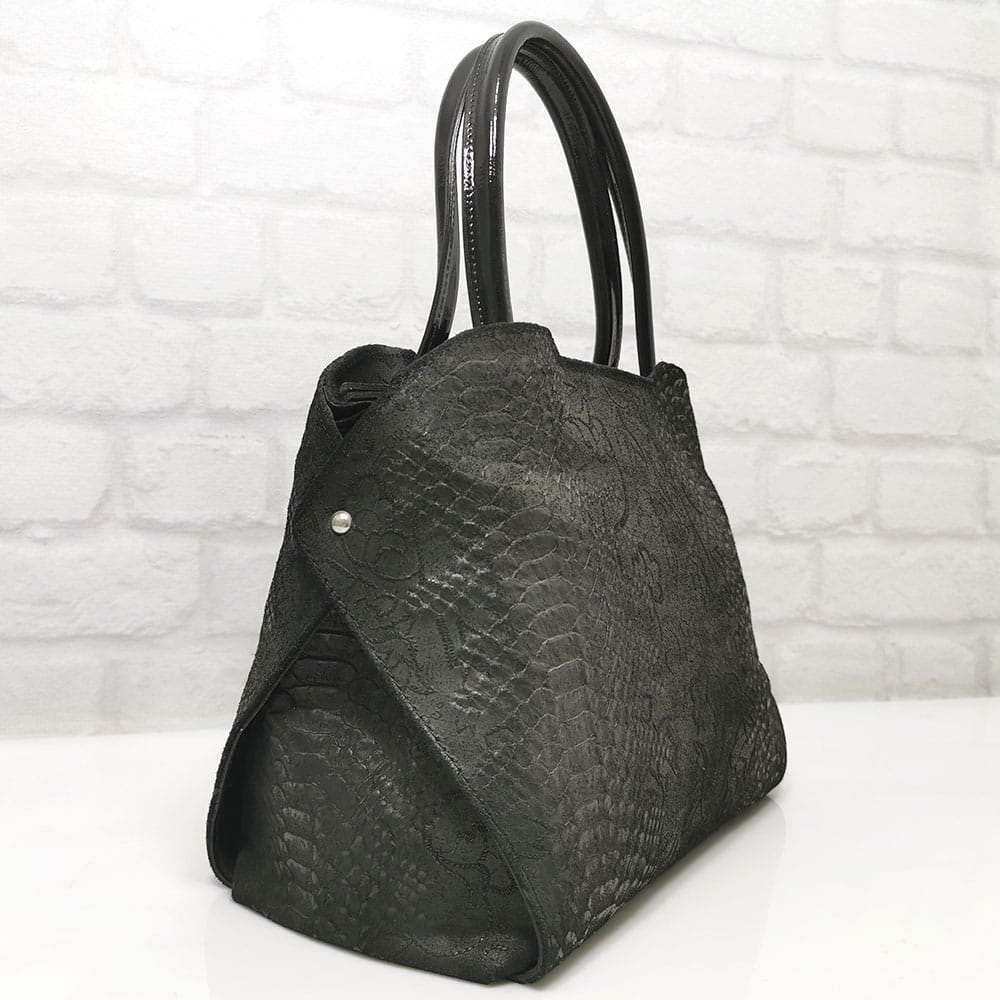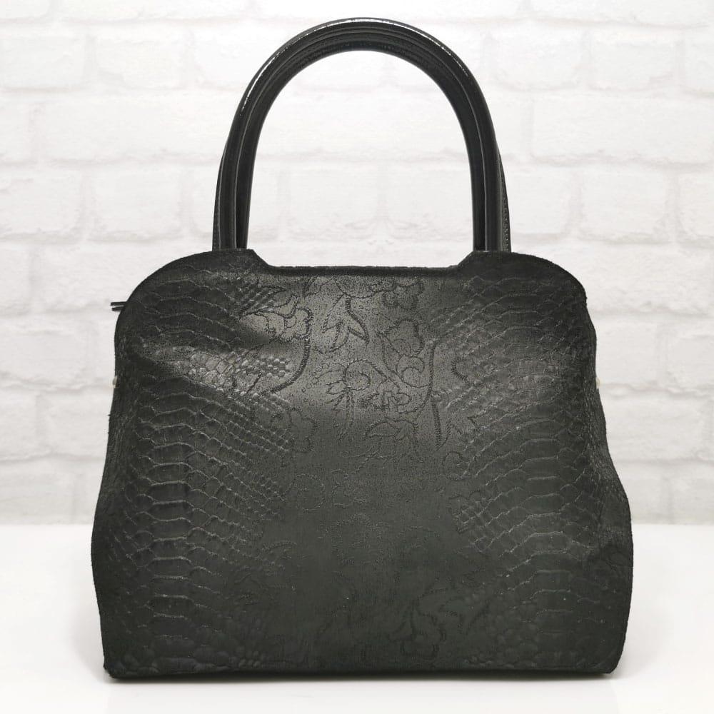 Естествен щампован велур, дръжки естествен лак, хастар-полиестер