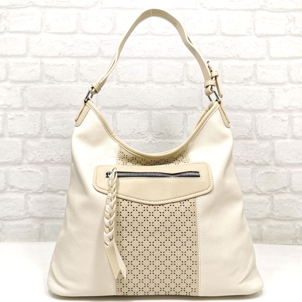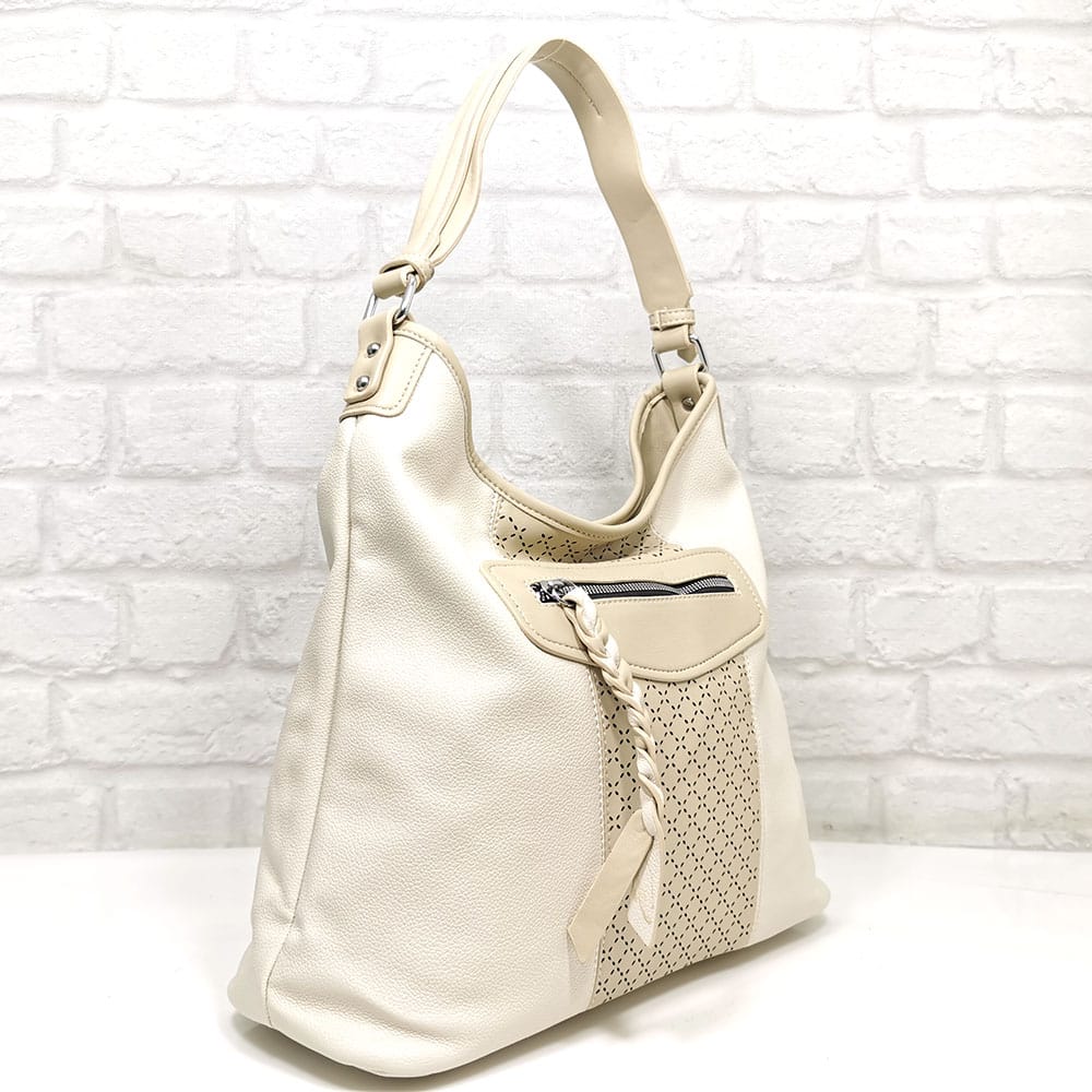 Основен екрю, комбиниран с бежово, обков сребрист.