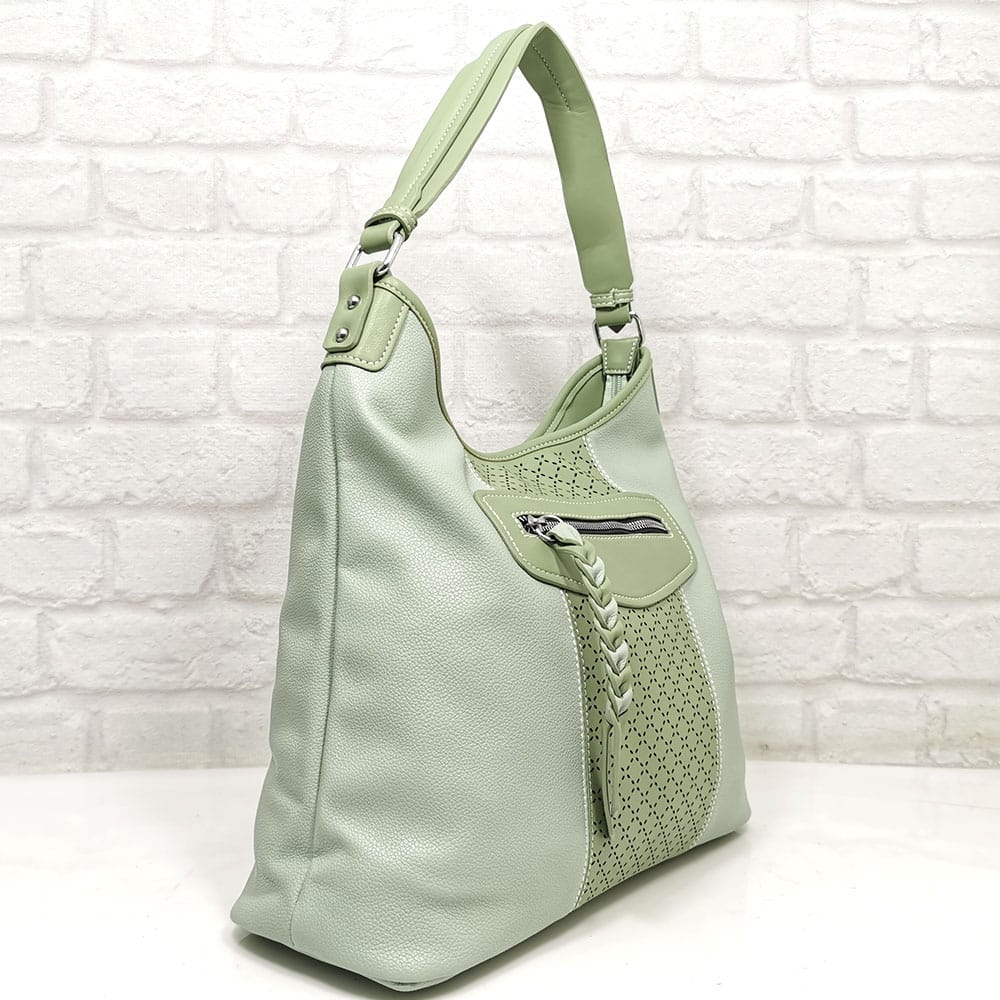 Една дръжка удобна за носене на рамо и една подвижна регулираща се дълга дръжка.