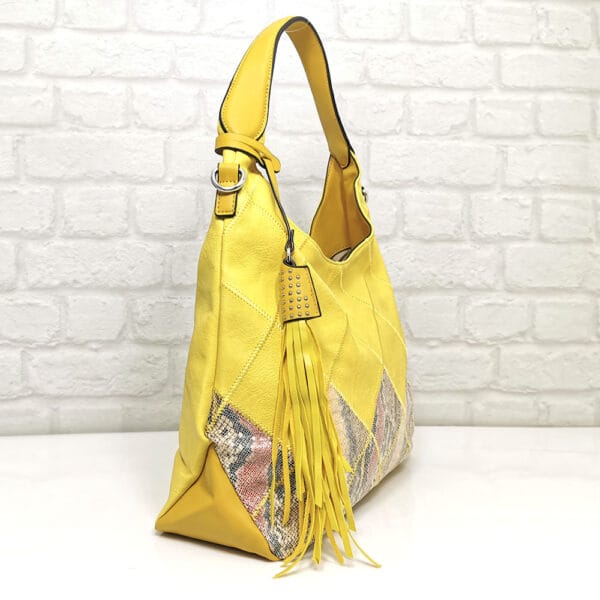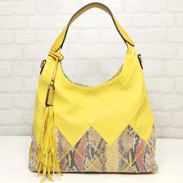 Жълт, гарниран с многоцветен змийски принт, обков сребрист