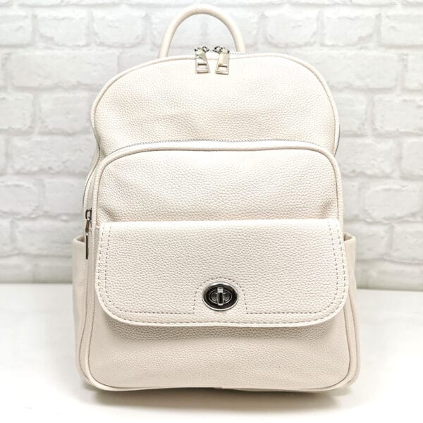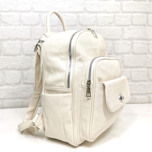 Две регулиращи се кожени дръжки, които като се издърпат нагоре раницата може да се носи и като чанта и една малка дръжка.