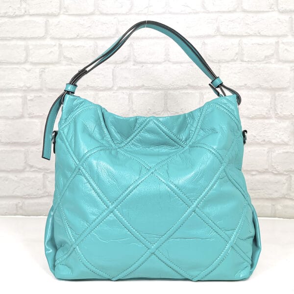 Вътре: средна преграда с цип, малко джобче с цип и два джоба за мобилни телефони.
