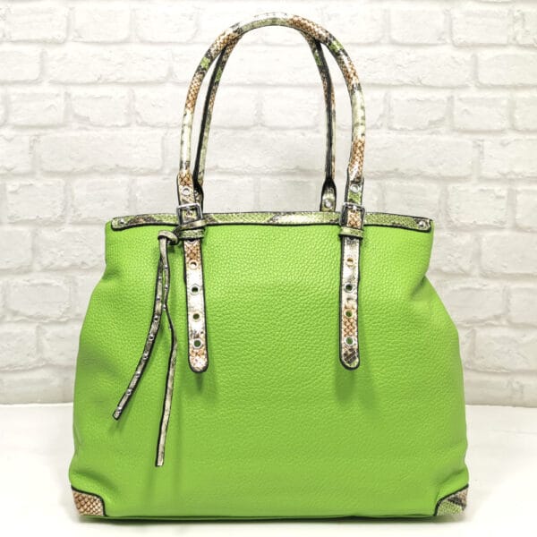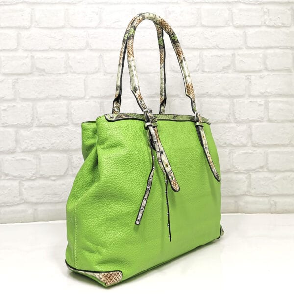 Основен зелен, дръжки и гарнитура шарен, леко лъскав змийски принт, обков сребрист