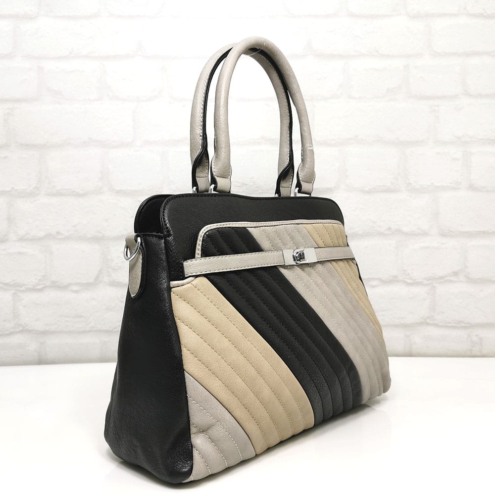 Кокетна, средна по големина чанта чанта Мария С черна гама в комбинация от няколко цвята, което я прави лесна за съчетаване. Освен, че е красива, чантата е и много функционална-с два външни джоба и средна преграда. Дизайна е на италианската марка Мария С. Всички стоки са с преглед и тест! Безплатна доставка за заявки над 60.00 лева до офис на транспортна фирма!