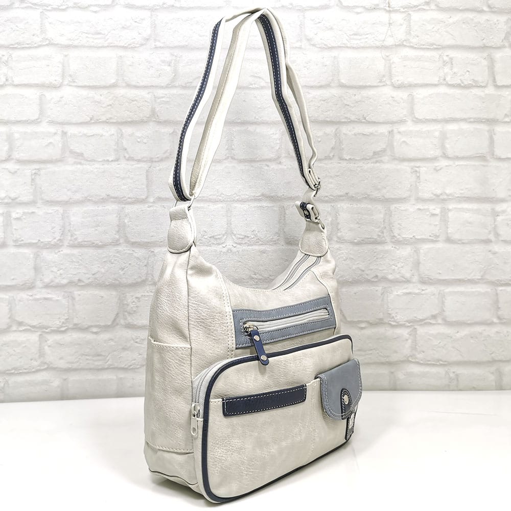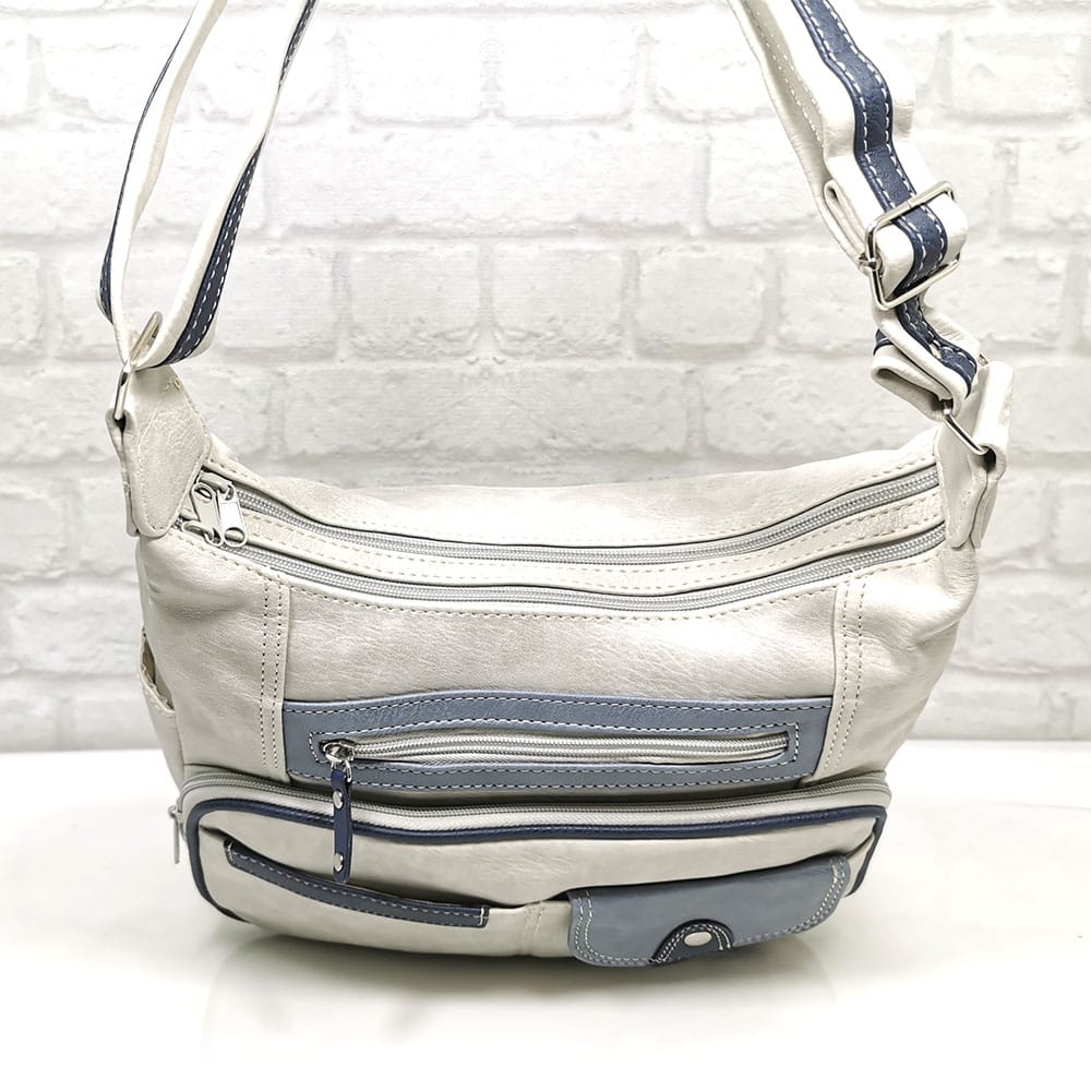 Отпред: Голям джоб с цип, среден джоб с цип, две малки джобчета едното се залепва с велкро. Отпред на капака има 2 малки джоба с цип