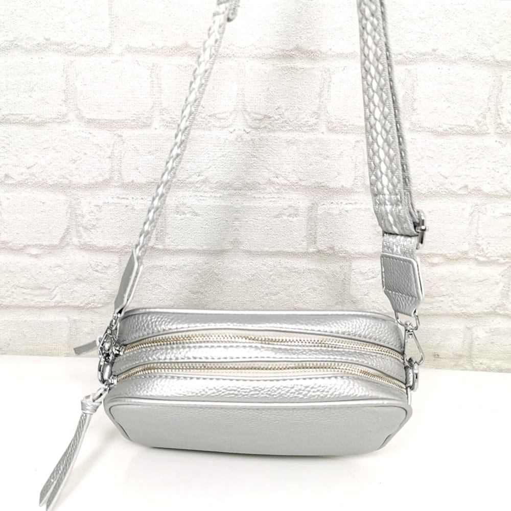 Чантата има две самостоятелни прегради, като всяка се закопчава с отделен метален цип, вътре има един малък джоб с цип, един джоб за телефон.
