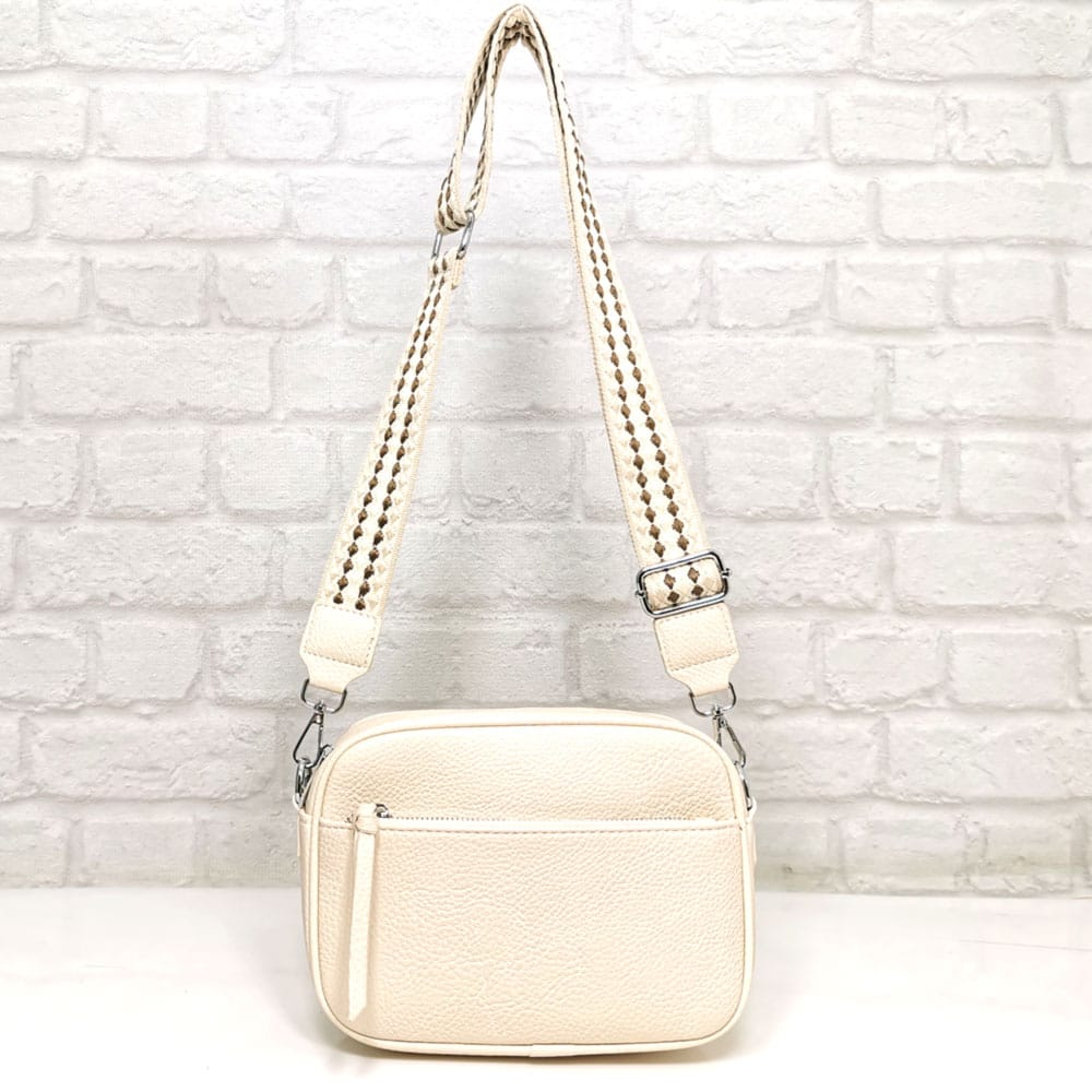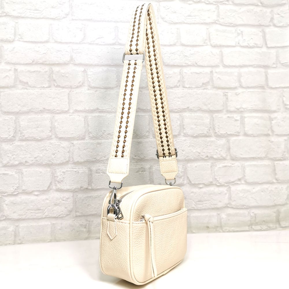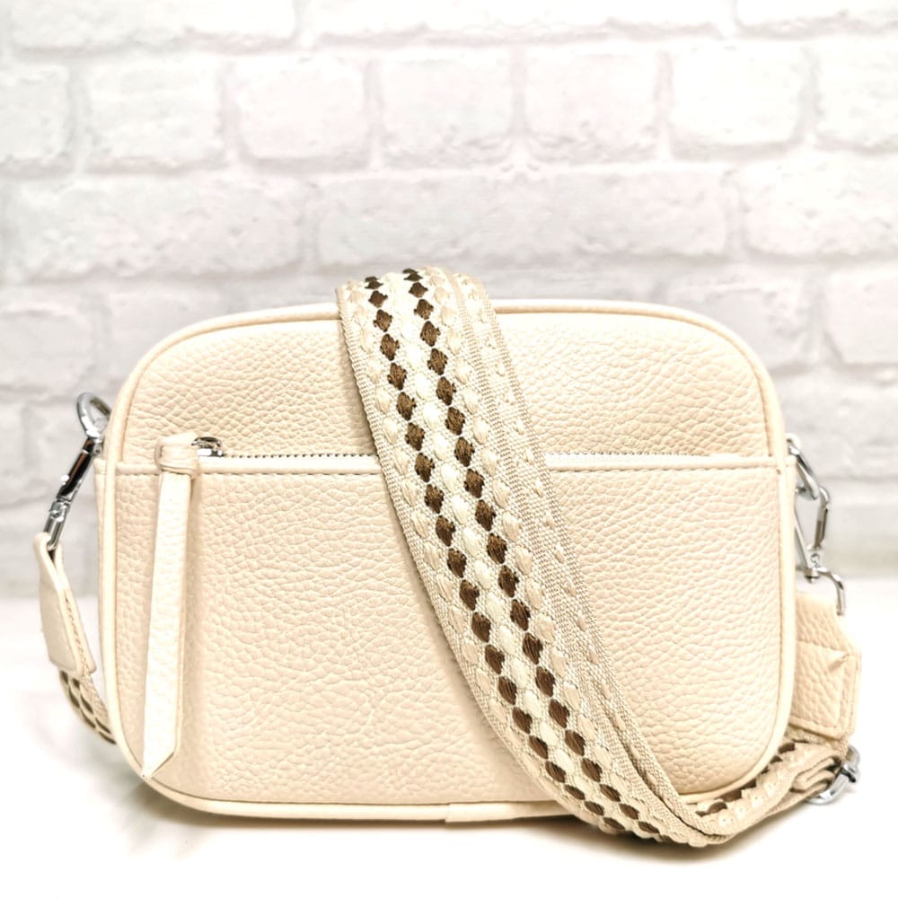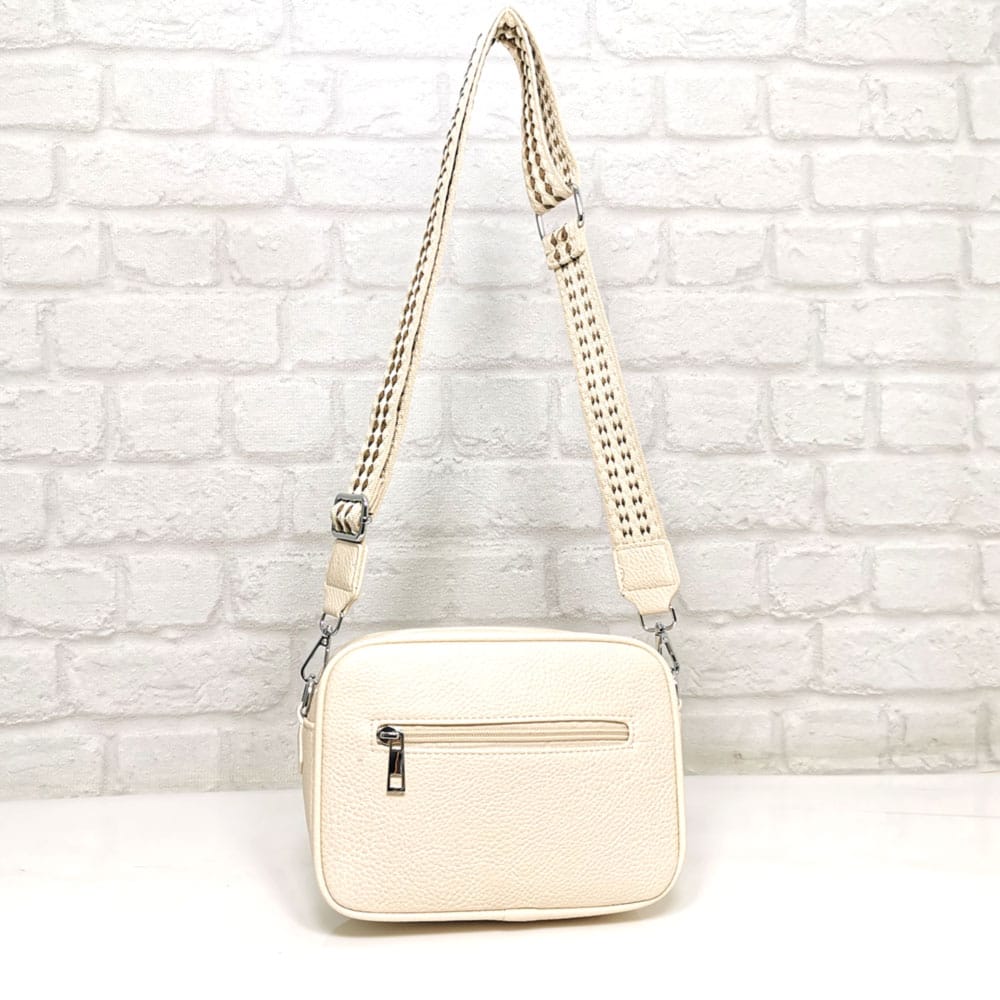 Екрю, дръжка съчетание от екрю, бежово и тъмно кафяво, обков сребрист.