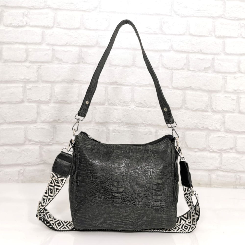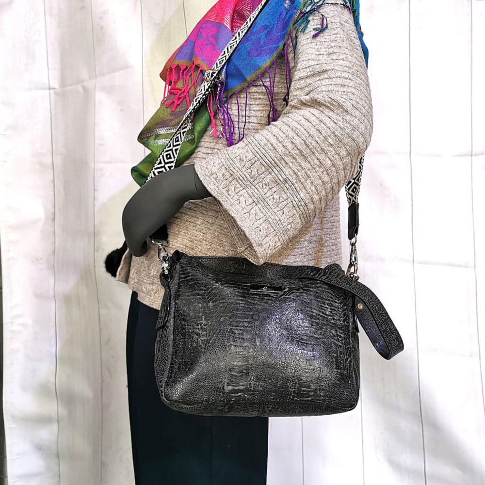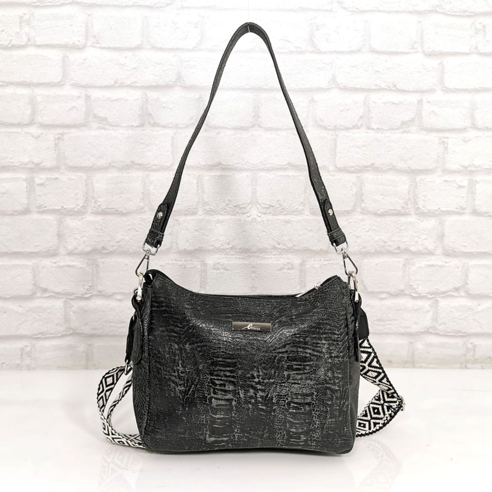 Чанта Еврика СН236НМ черен меланж, от естествена кожа