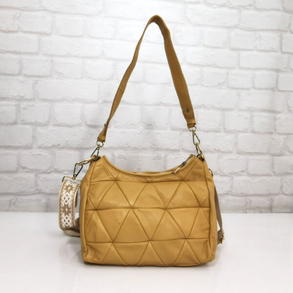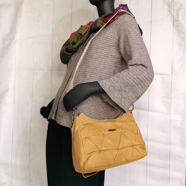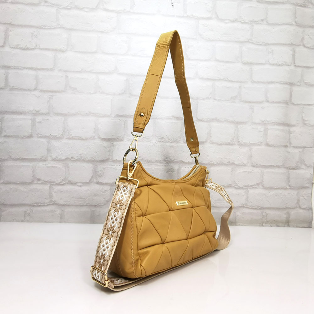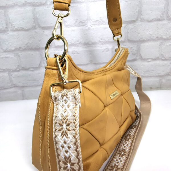 Естествена кожа на парчета, дръжка от тъкан текстил, хастар-полиестер