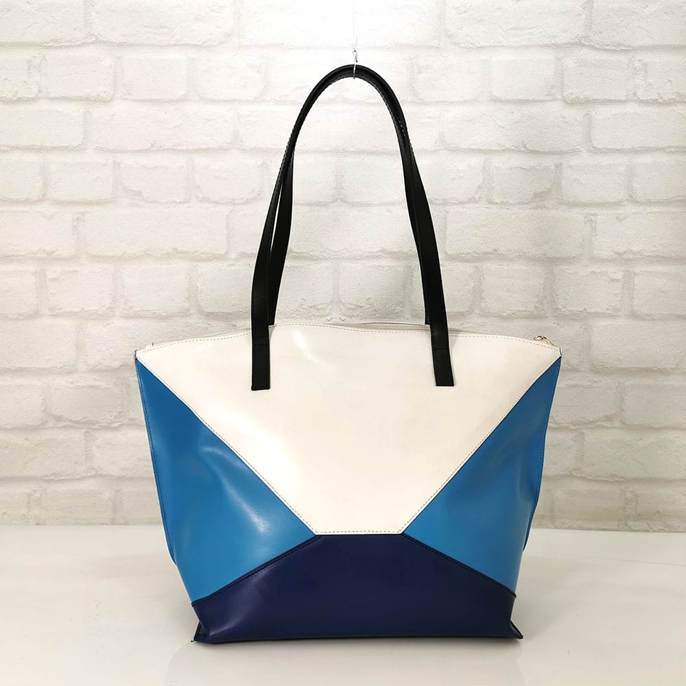 Многоцветна-бяло, тъмно синьо, синьо, дръжки черни, обков сребрист.