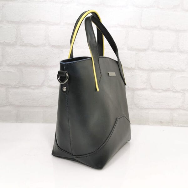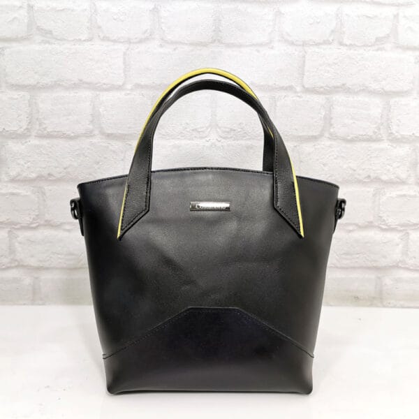 Черен, на късите дръжки има украсителен жълт кант, обков сребрист, потъмнен.