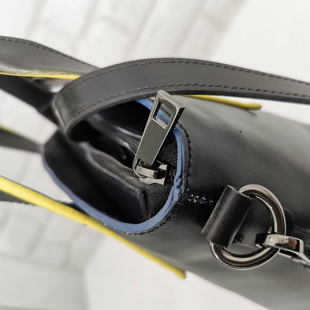 Вътре: средна преграда с цип, един малък джоб с цип и един джоб за телефон. Отвън на гърба джоб с цип.