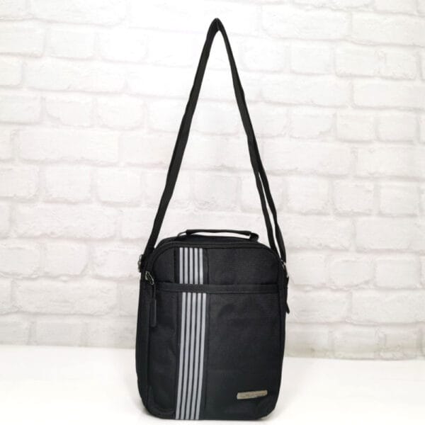 Една къса дръжка и една дълга регулираща се дръжка от текстилна лента с ширина 3.8 см. и дължина 140 см. в разгънат вид. Дългата дръжка е зашита за чантата и не се сваля.