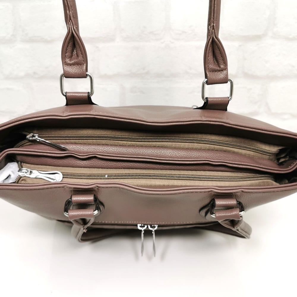 Чантата е с две отделни прегради, като всяка от тях се закопчава с отделен цип.