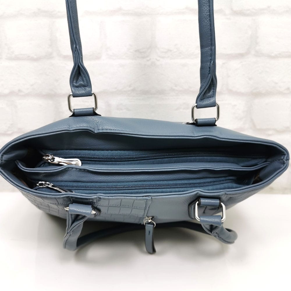 Чантата е с две отделни прегради, като всяка от тях се закопчава с отделен цип.