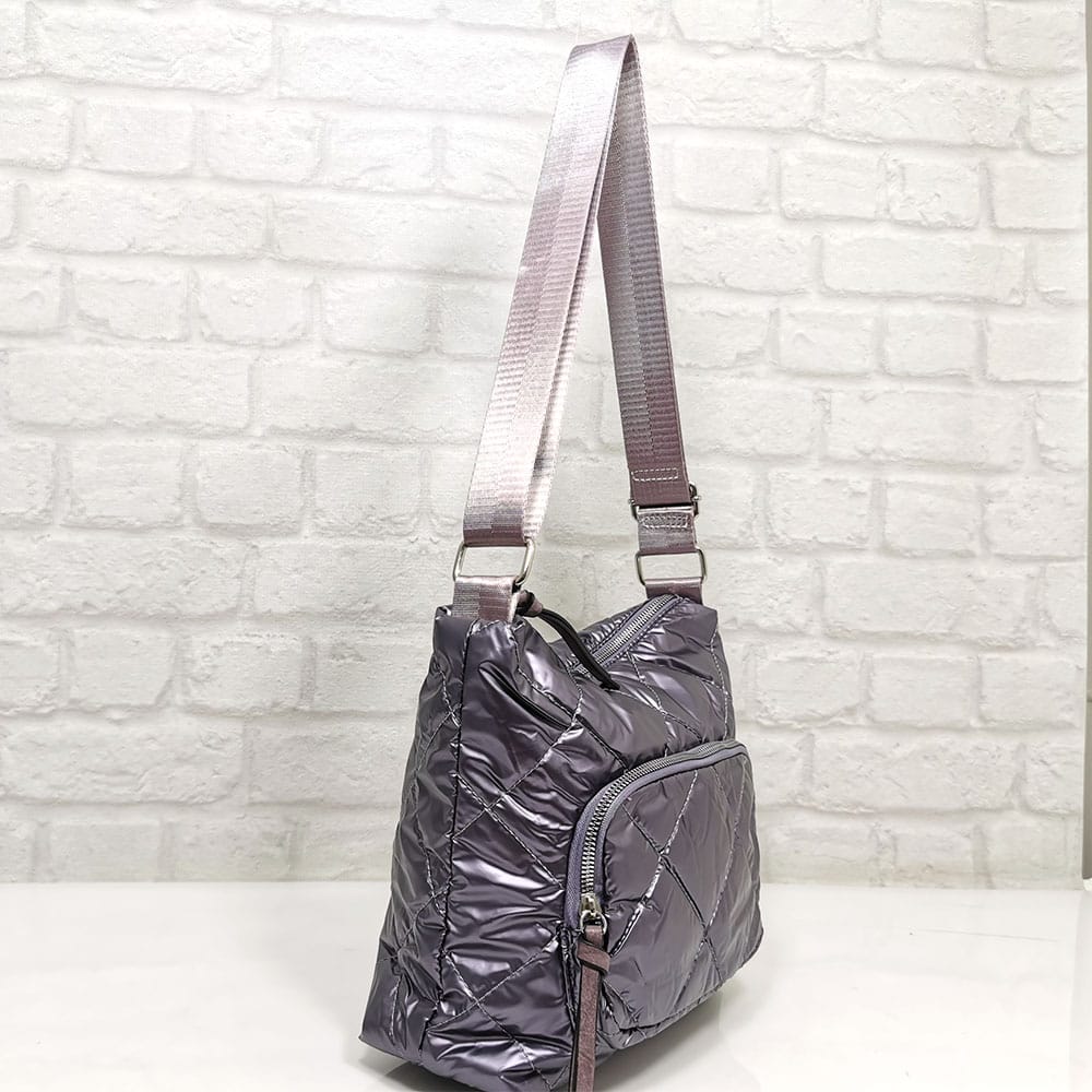 Отвътре: средна преграда с цип, малко джобче с цип, два джоба за телефони.