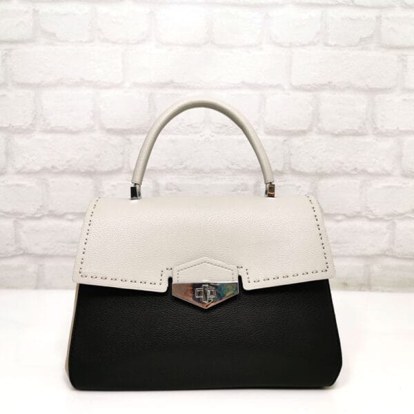 Една къса дръжка за носене на чантата в ръка и една подвижна дълга регулираща се дръжка..