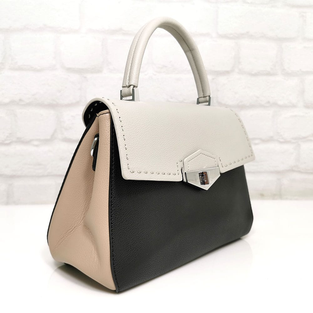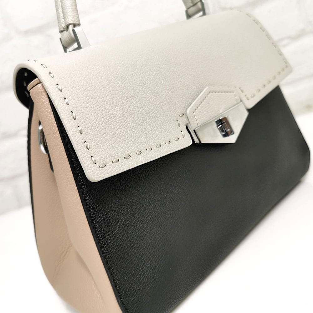 Комбинация от три цвята-черен, сив, бежов, обков сребрист.