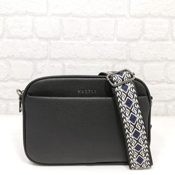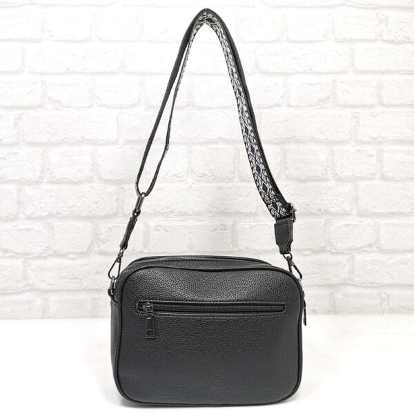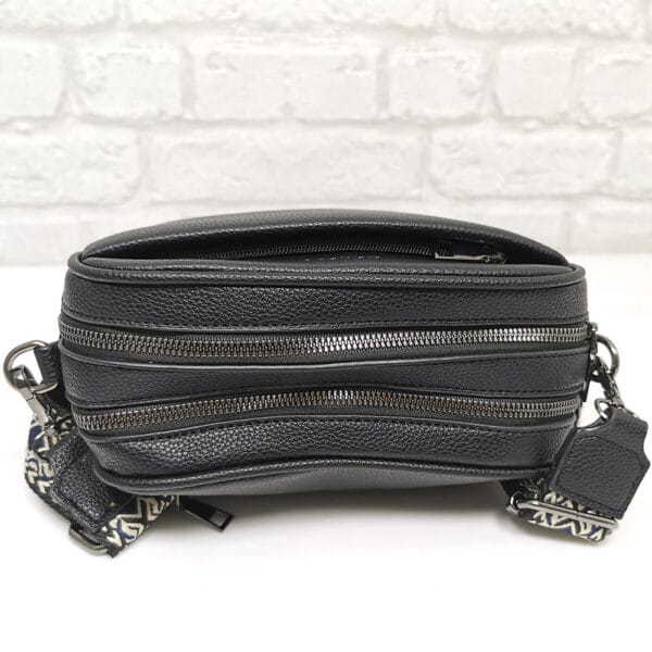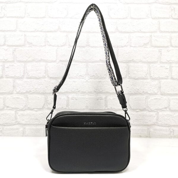 Чанта черен, дръжка комбинация от черен и бял, обков сребрист, матиран.