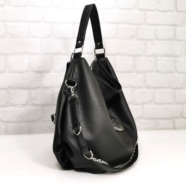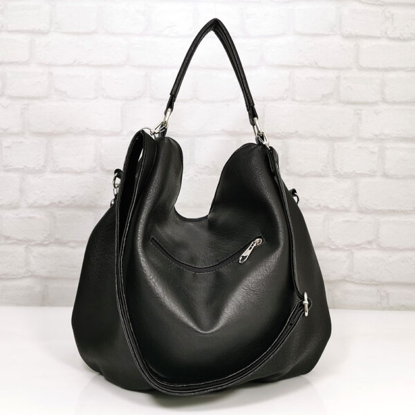 Една къса дръжка, една средно дълга дръжка с дължина 65 см. която става за носене на рамо с обемни дрехи, а ако не я ползвате, можете да я пуснете да виси отпред, като украсителен елемент. Има и още една дълга регулираща се дръжка.