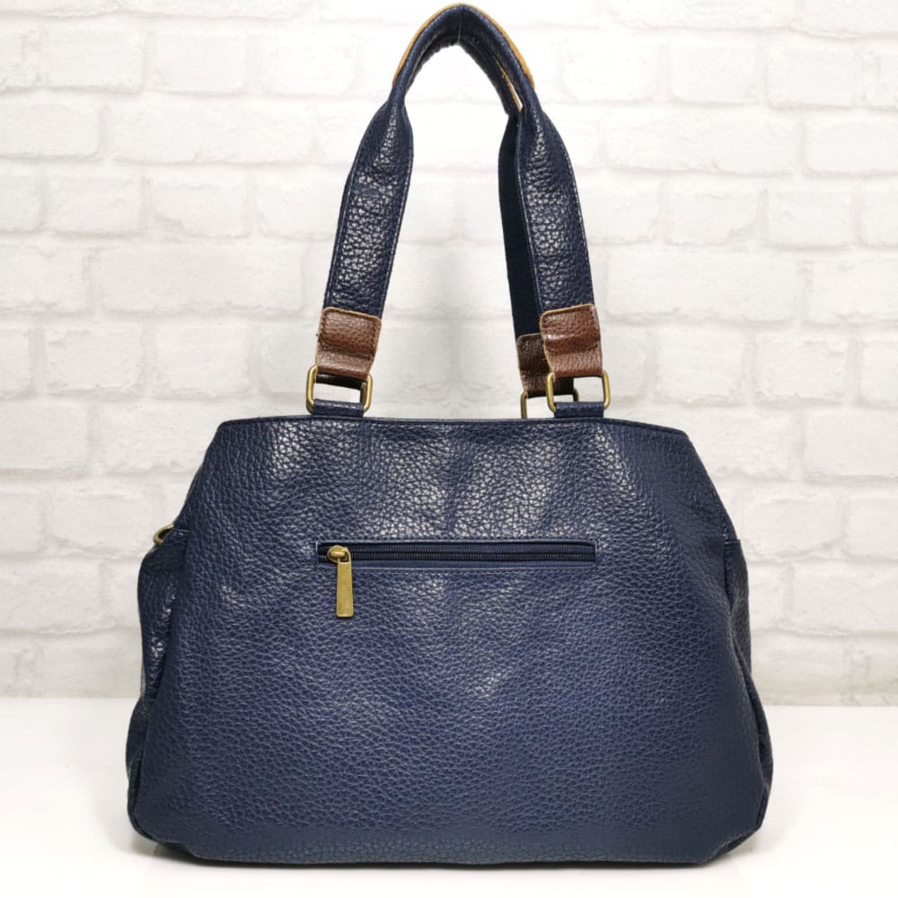 Отвън: на гърба джоб с цип, отпред джоб с метален цип.