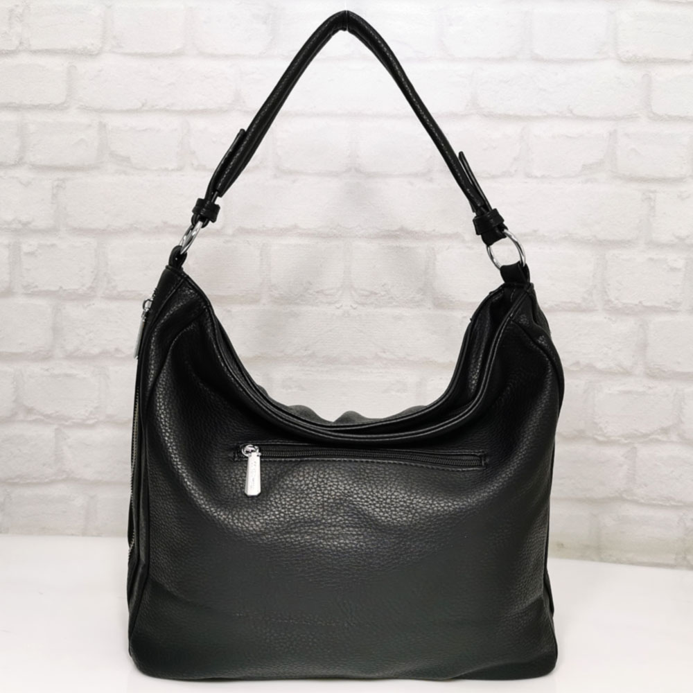 Една дръжка, достатъчно дълга за да можете да носите чантата на рамо, дори и с по-обемни дрехи и една подвижна, дълга регулираща се дръжка.