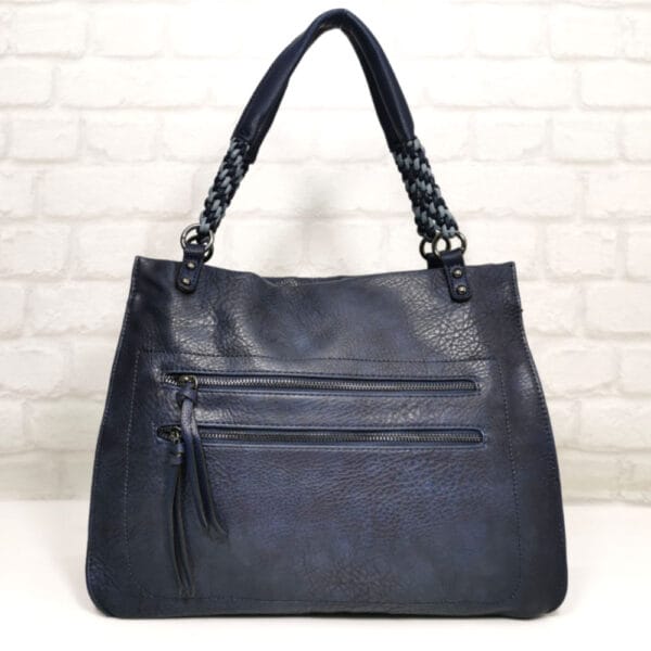 Отвън: на гърба джоб с цип, отпред два джоба с метални ципове.