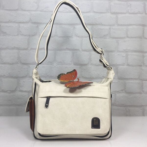 Отпред: Голям джоб с капак, под капака един голям джоб в него има джобче за телефон и три джобчета за визитки. Отпред на капака има 2 малки джоба с цип