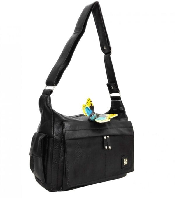 Отпред: Голям джоб с капак, под капака един голям джоб в него има джобче за телефон и три джобчета за визитки. Отпред на капака има 2 малки джоба с цип