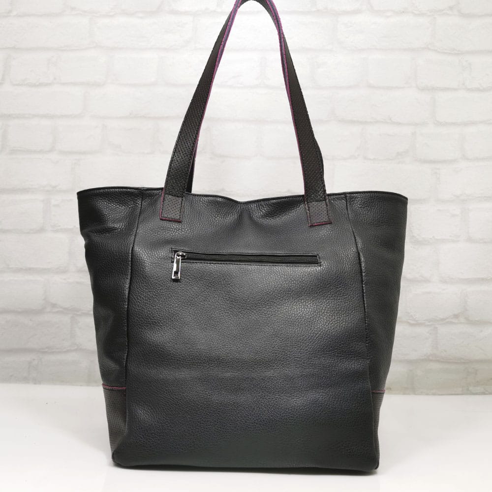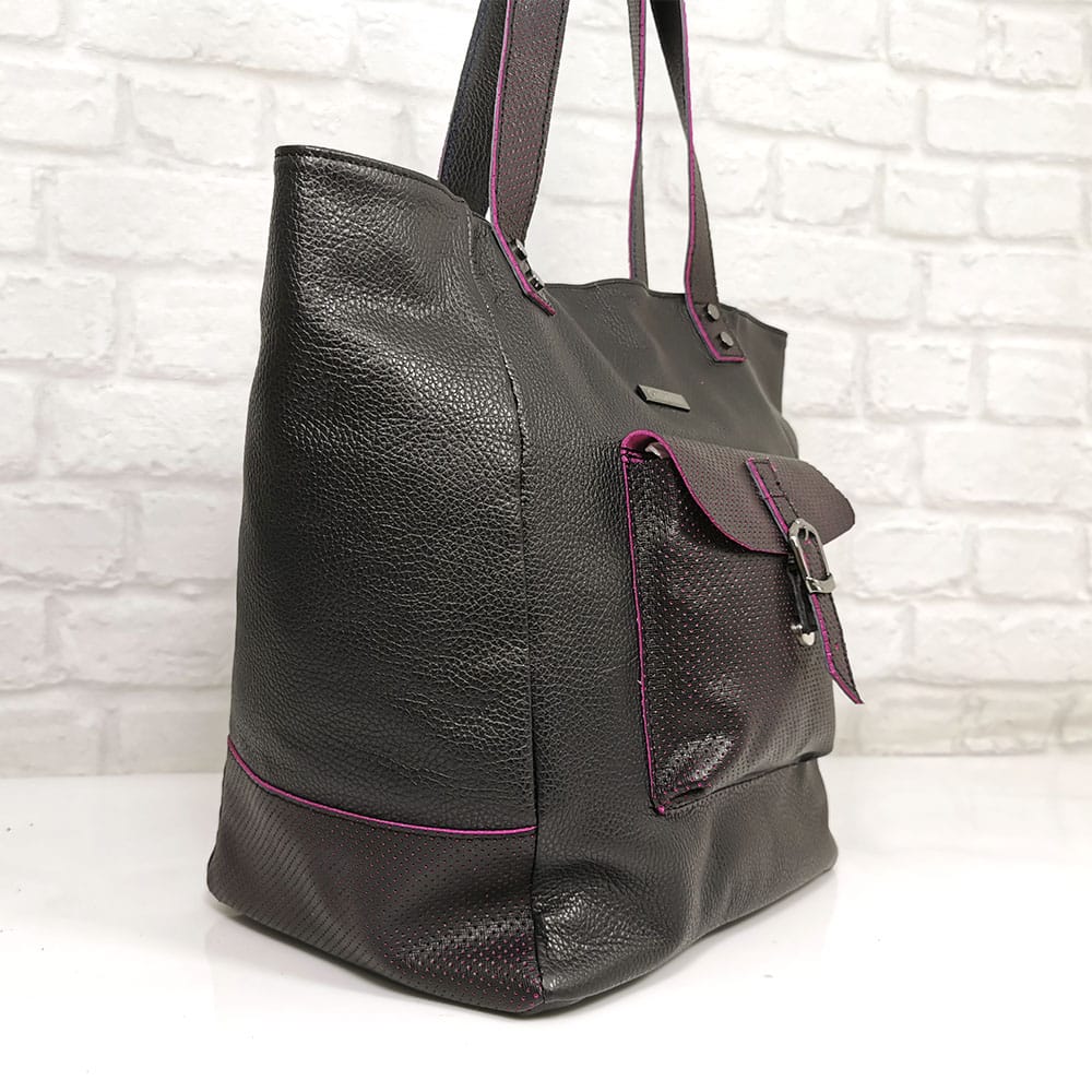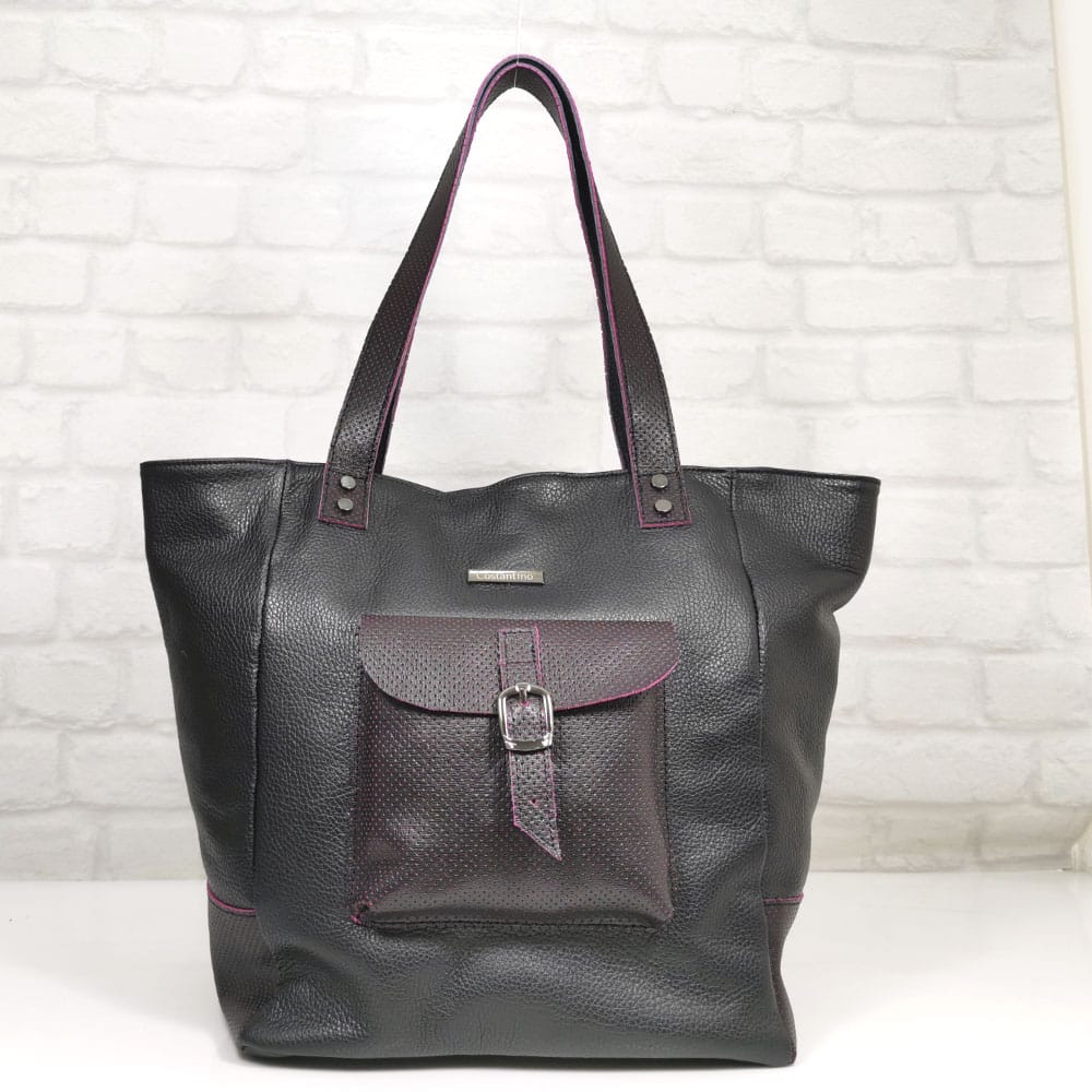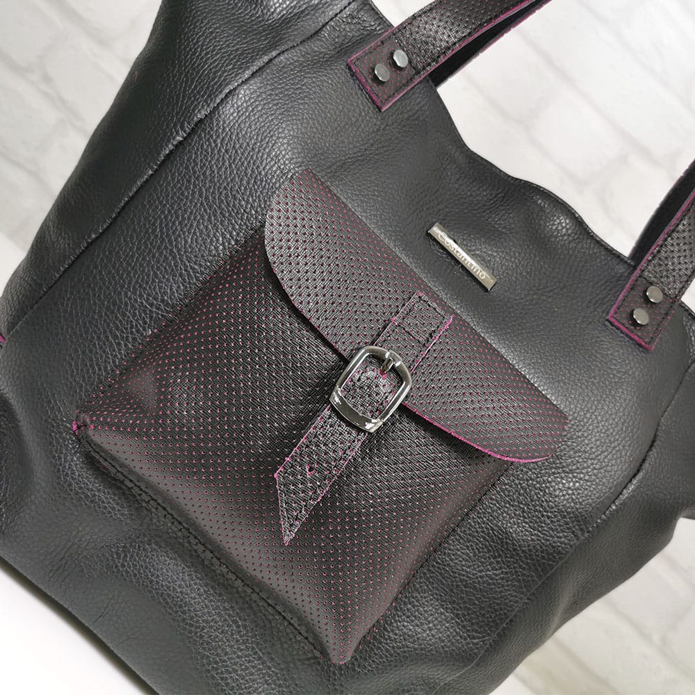 Черен с бордо акценти, обков сребрист.
