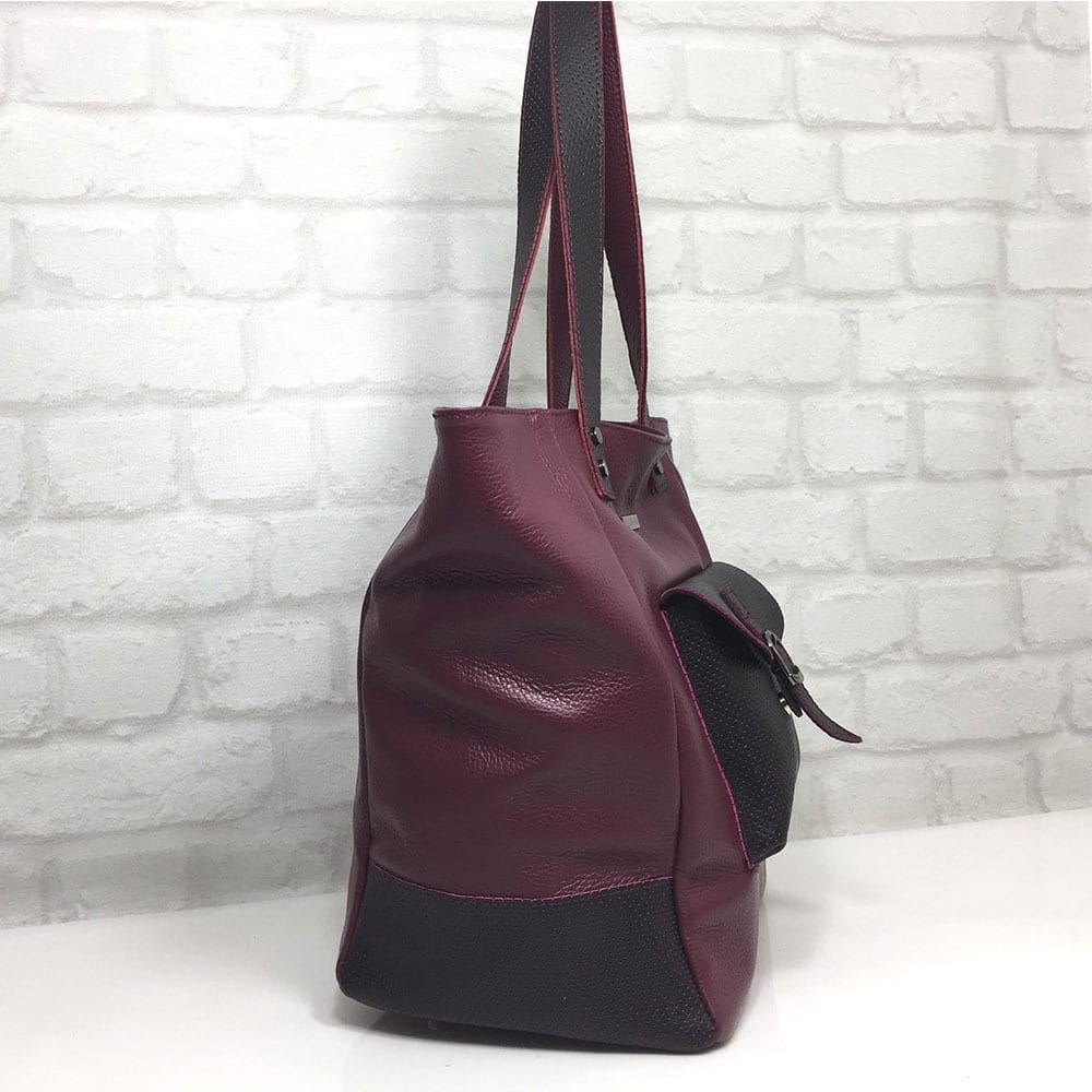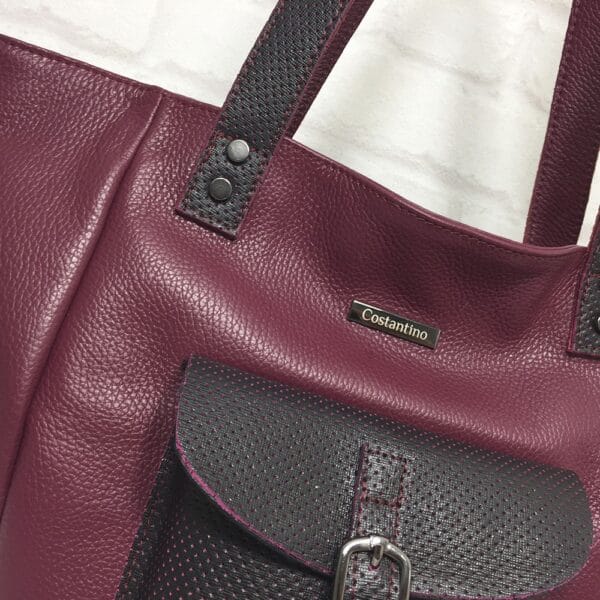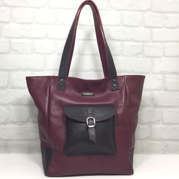 Тъмно червен „малина“, джоб и дръжки черен, обков сребрист матиран