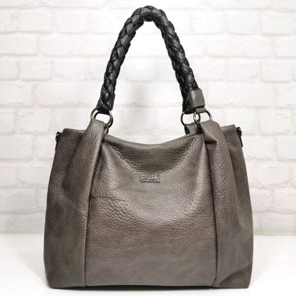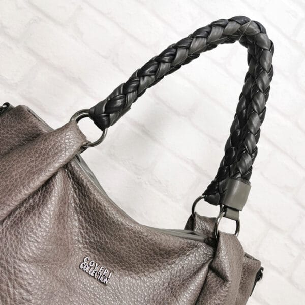Сиво-бежов (къртица), дръжки плетеница от черно и сиво, обков сребрист.