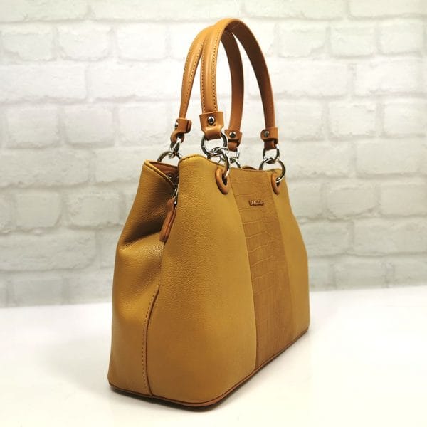 Три отделни големи прегради, като средната се закопчава с метален цип, двете странични с магнитни копчета. Средната преграда също е разделена на три отделения, като средното се закопчава с цип