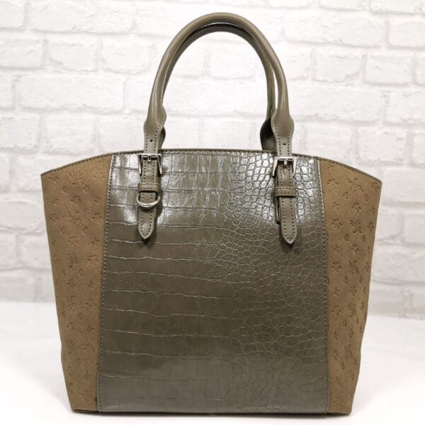Висококачествена еко кожа с кроко принт, комбинирана с еко кожа имитация на велур с принт на фигурки, хастар-полиестер