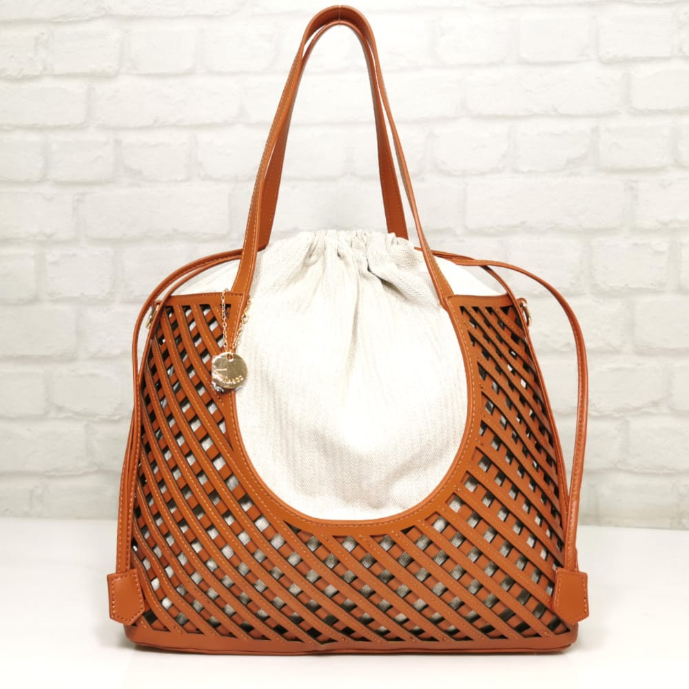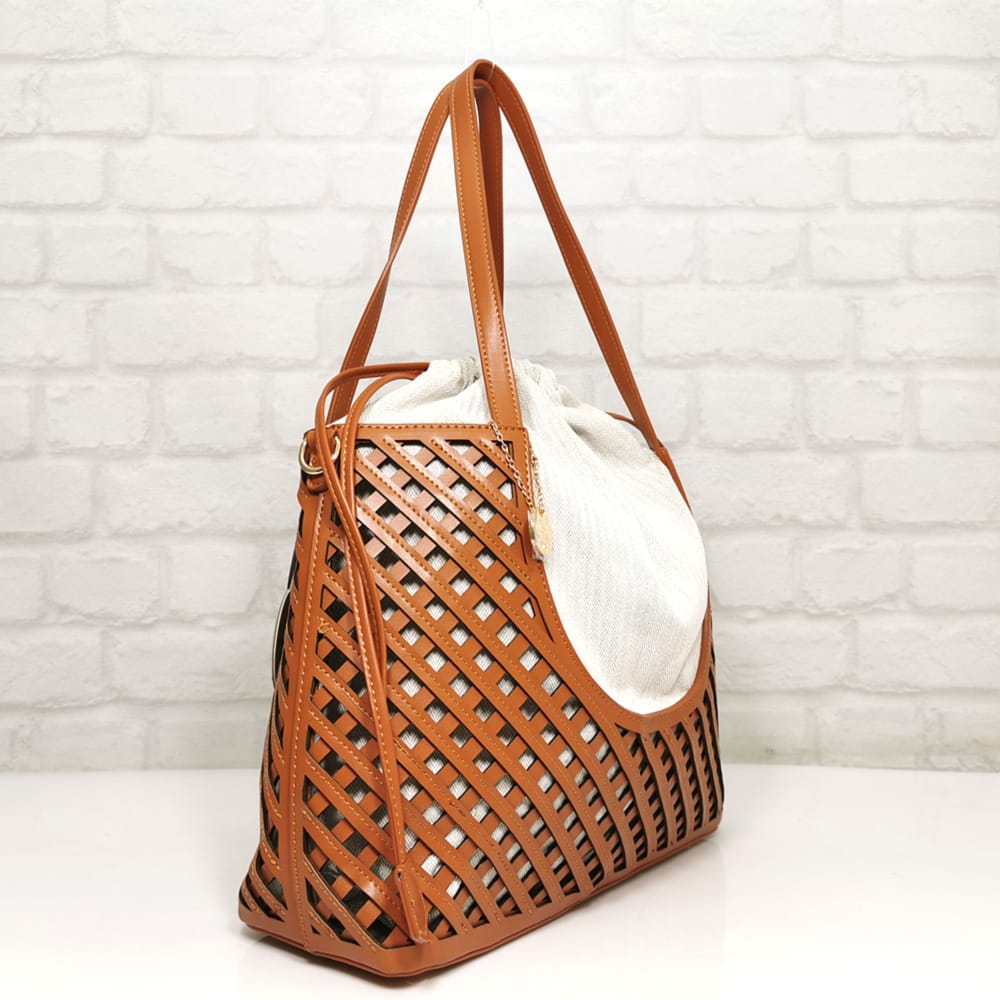 Основен карамел, торба екрю, обков метален златист.