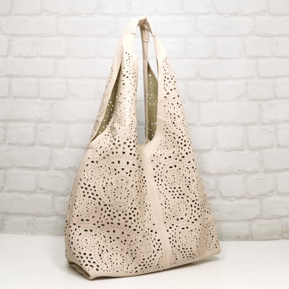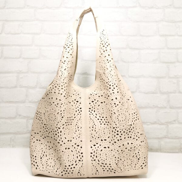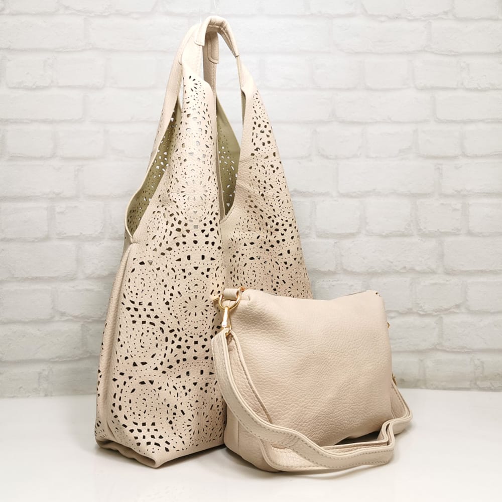 Голямата чанта е без хастар и без джобове, малката е с един външен джоб без закопчаване.