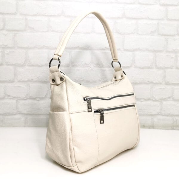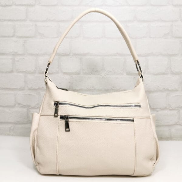 Отвън: отзад джоб с цип, отпред два джоба с метални ципове, от двете страни по един джоб без закопчаване.