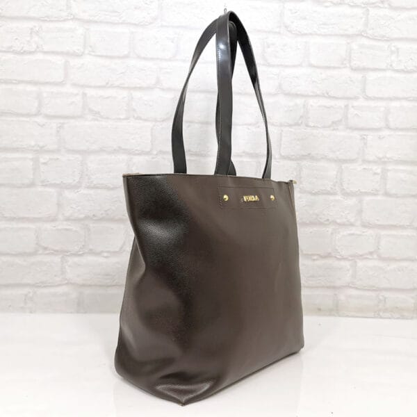 Тъмно кафяв, дръжки черни, обков златист.