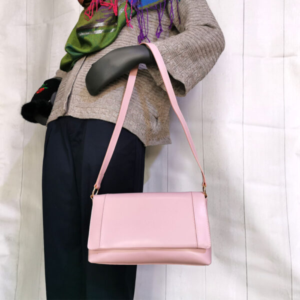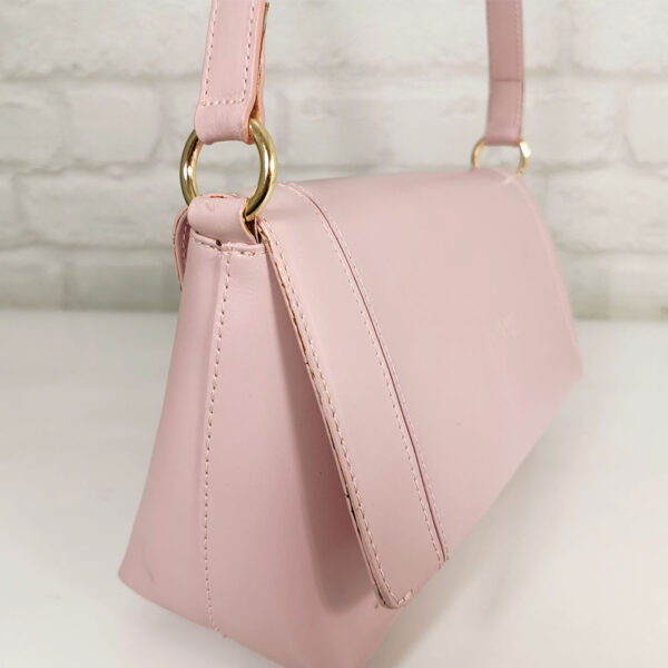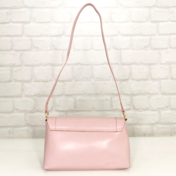 Вътре: средна преграда с цип, едно малко джобче с цип и джоб за малък телефон.
