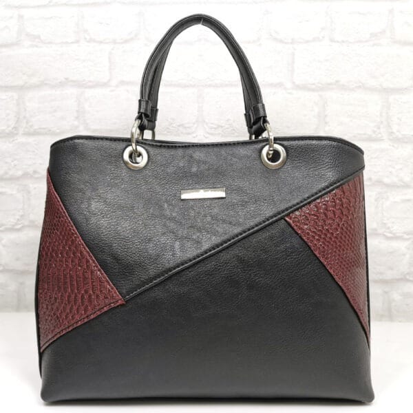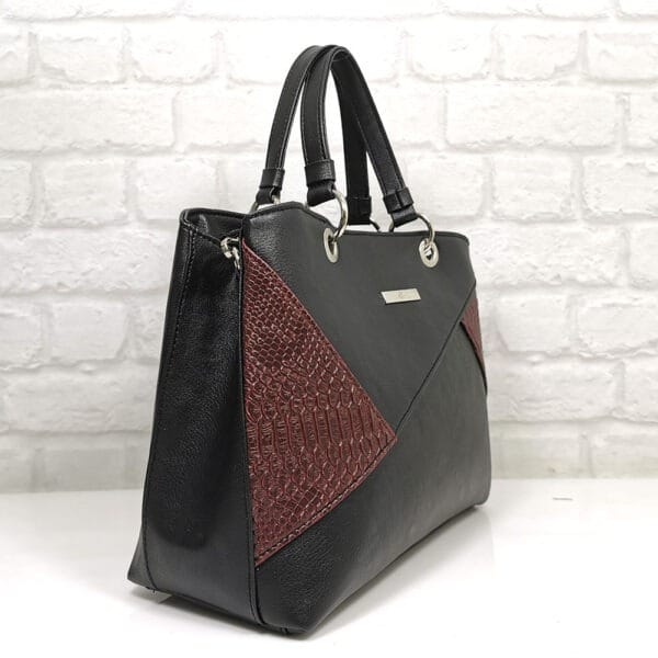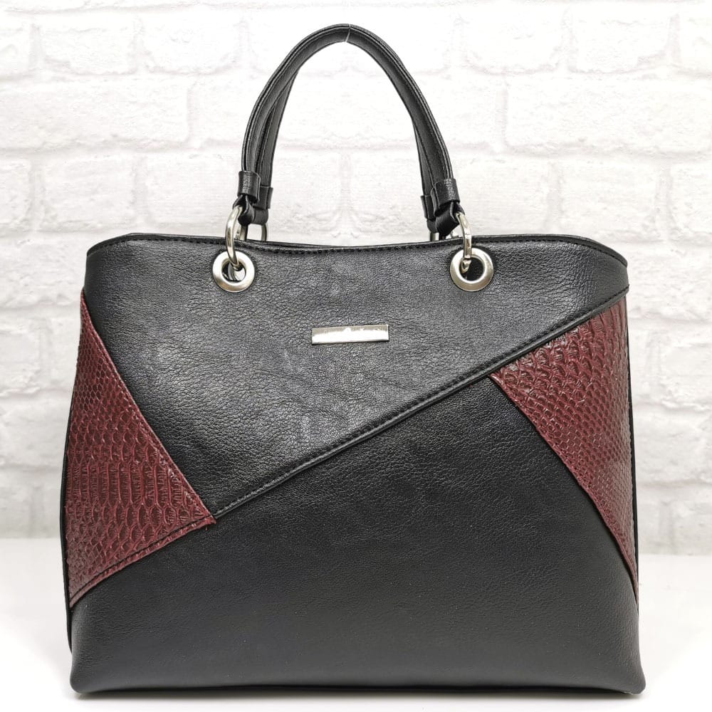 Основен черен, комбиниран с ефектен  материал в бордо, обков сребрист