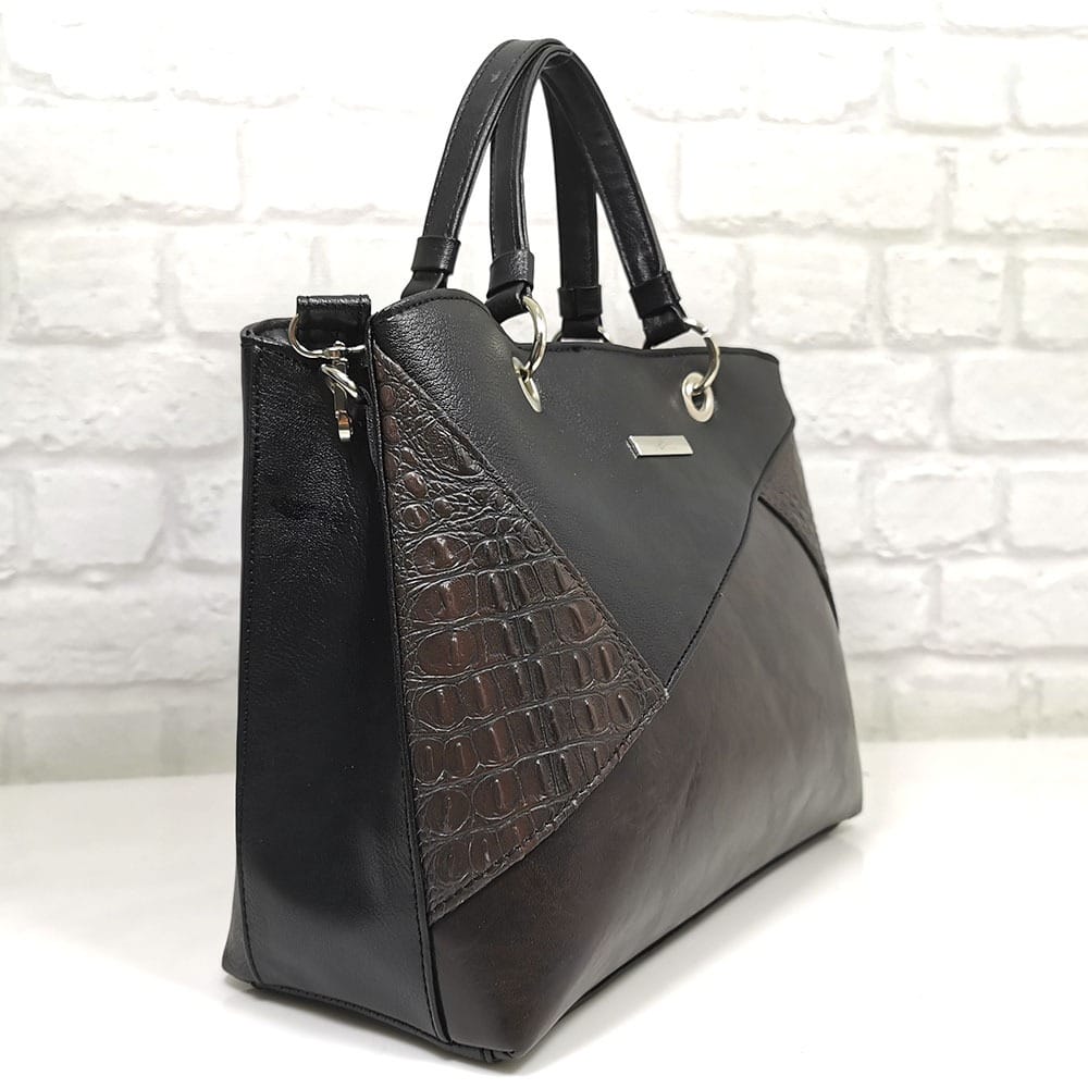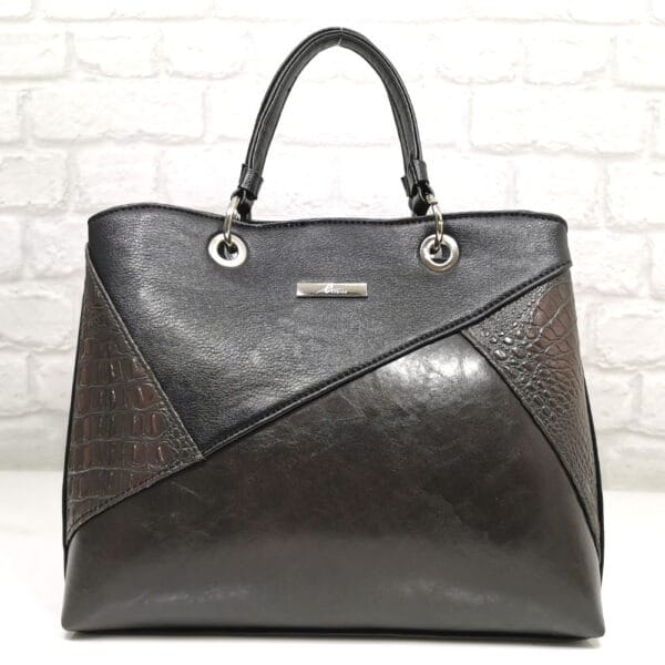 Основен черен, комбиниран с ефектен тъмно кафяв материал, обков сребрист