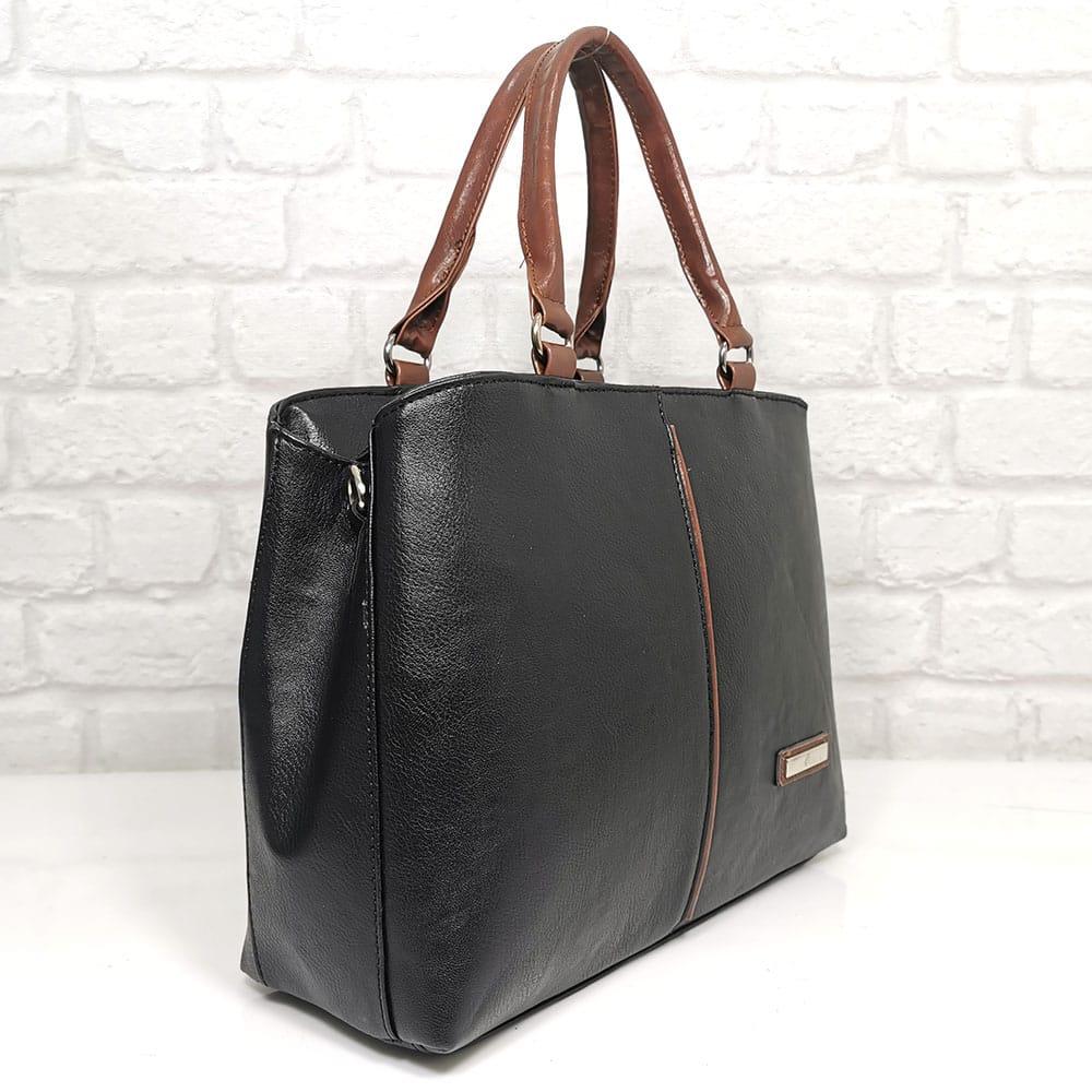 Елегантна дамска чантa Еврика черна с кафяво много лека и с удобни прегради! Безплатна доставка за заявки над 80.00лв./40.90€ до офис на транспортна фирма! Всички стоки са с преглед и тест!