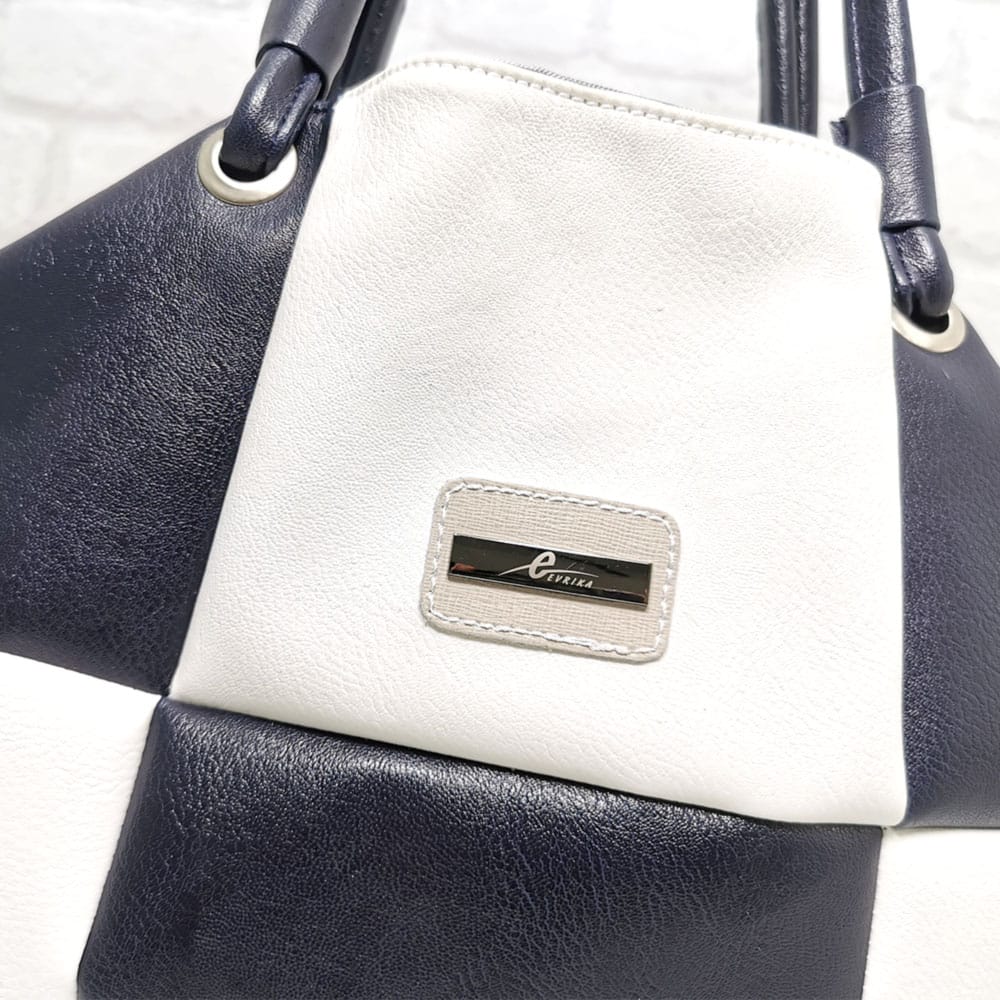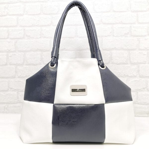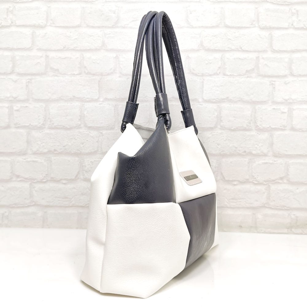 Отвътре: три отделни прегради, като двете странични се закопчават с едно общо магнитно копче, а средната се закопчава с цип, малко джобче с цип, един джоб за мобилен телефон.