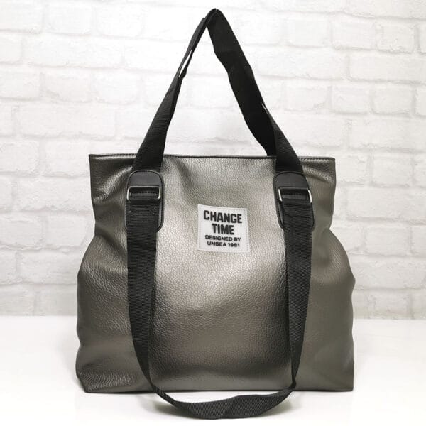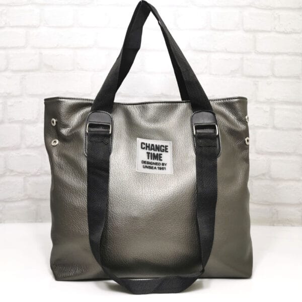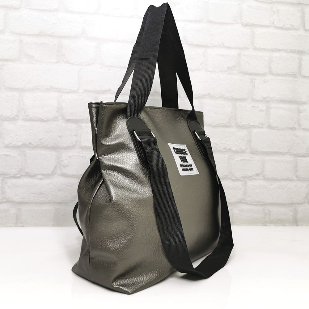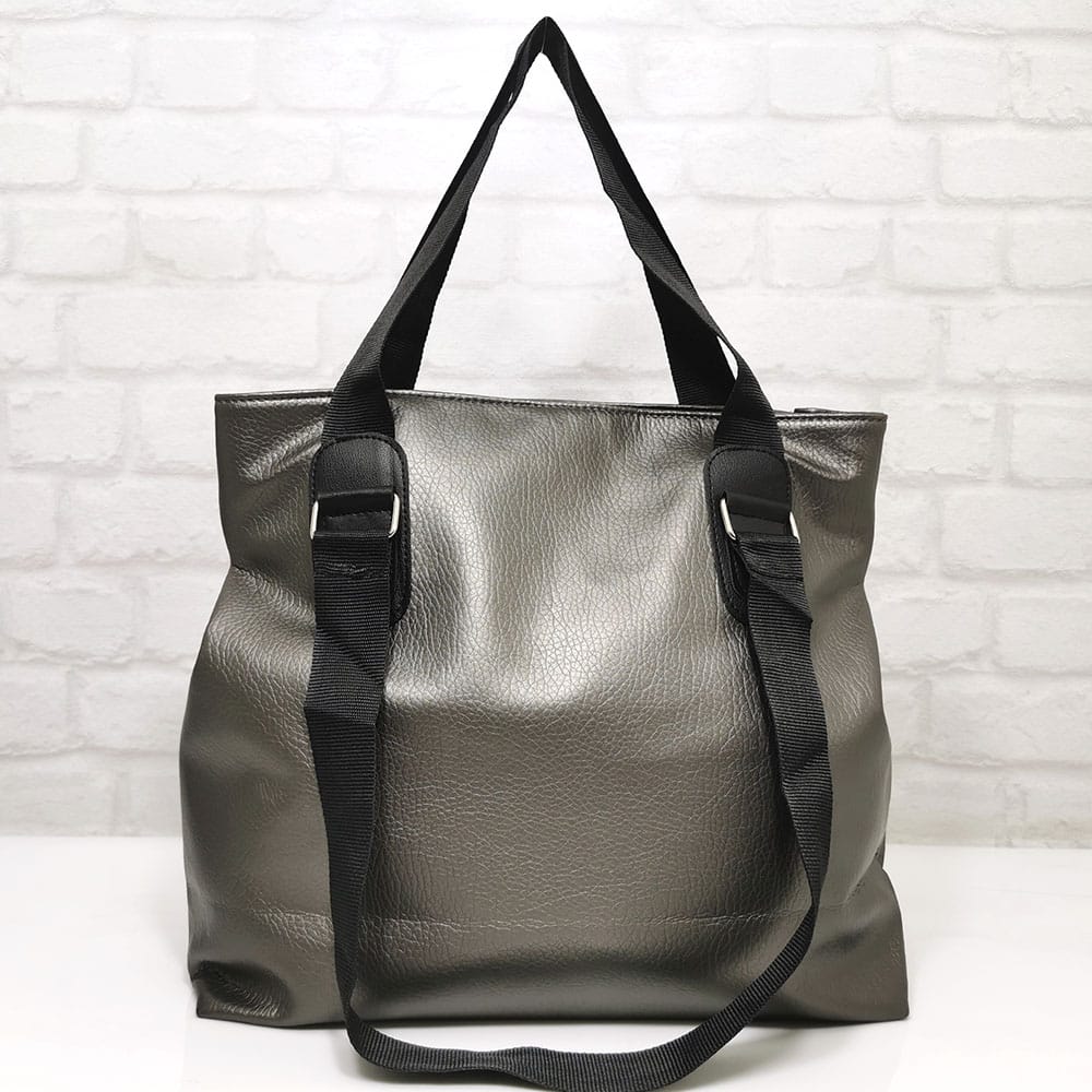 Еко кожа, дръжки от текстилна лента, хастар-полиестер.